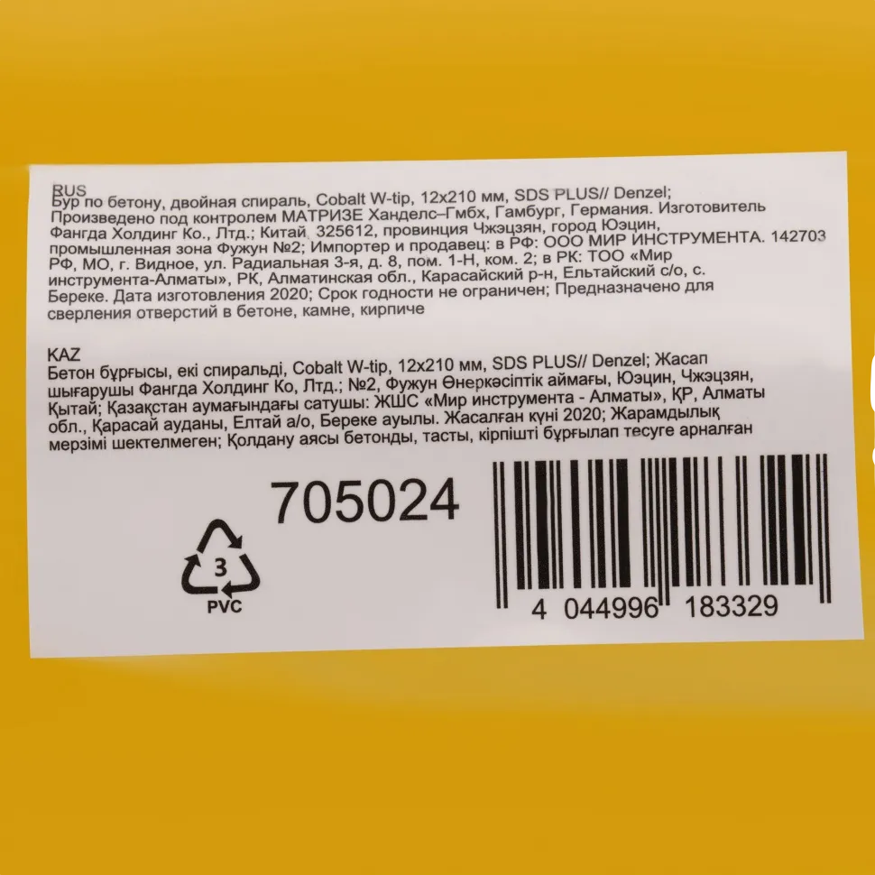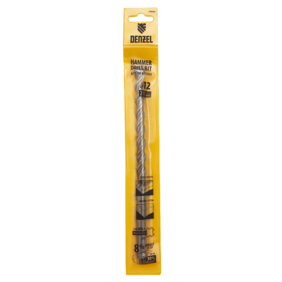 Бур по бетону Denzel Cobalt W-tip 705024 размером 12 х 210 мм, с хвостовиком SDS-plus и двойной спиралью, предназначен для сверления бетона, кирпича и камня. Используется в качестве оснастки для перфораторов с патроном SDS-plus. Бур оптимален для проведения строительных, ремонтных, монтажных работ.