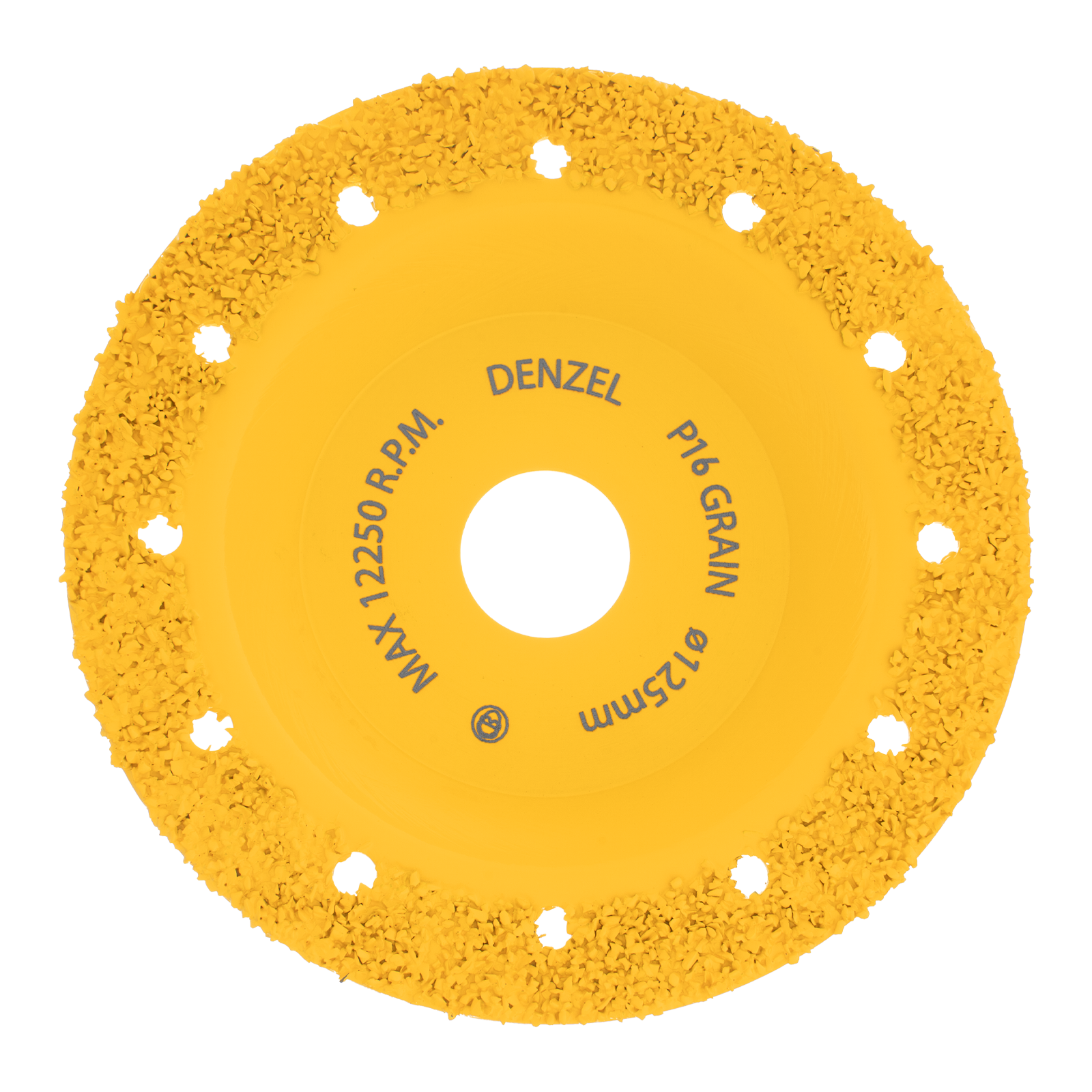 Твердосплавная зачистная чашка Denzel 72975 плоской формы, диаметром 125 мм, со средним абразивным зерном P16, — оснастка для углошлифовальной машины, предназначенная для проведения зачистных работ. Оптимальна для черновой обработки твердой и мягкой древесины, пластика, резины, газобетона, кирпича. Позволяет быстро и эффективно выровнять поверхность, удалить старое лакокрасочное покрытие, остатки клея, цемента и т.д. Не подходит для шлифования металла и твердого камня (гранита)! Благодаря облегченному корпусу чашки нагрузка на УШМ снижена, что продлевает срок службы инструмента.