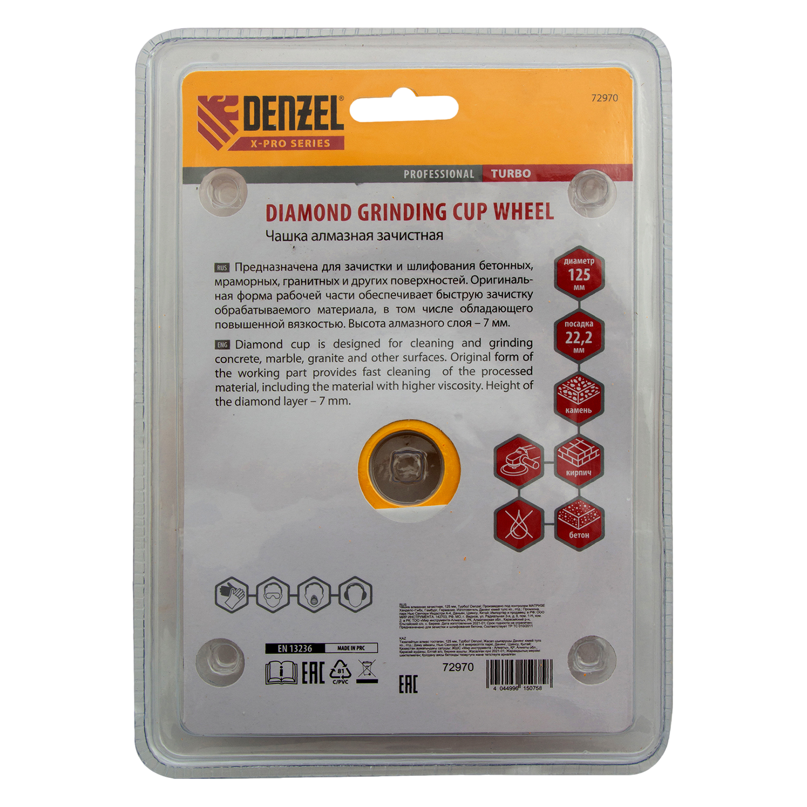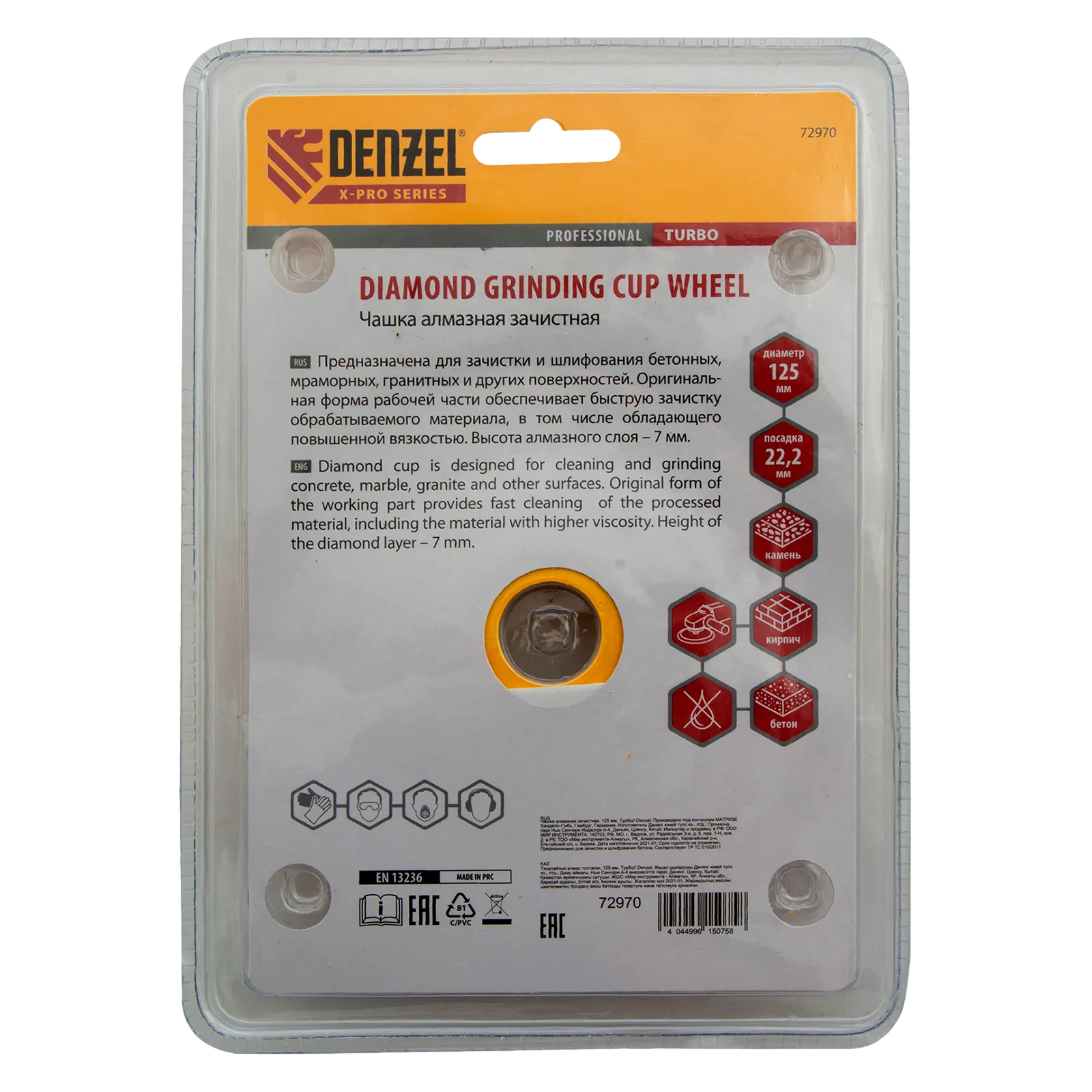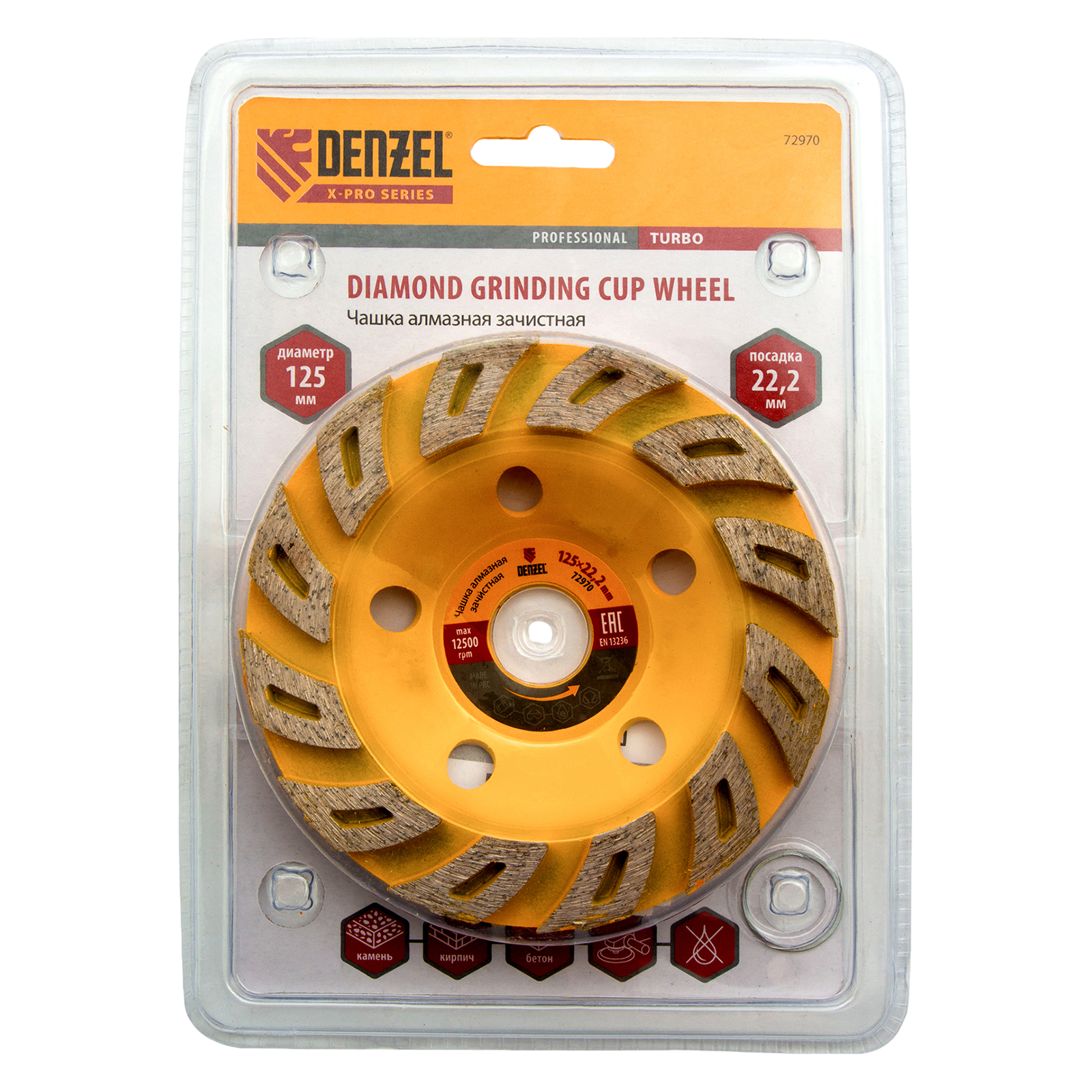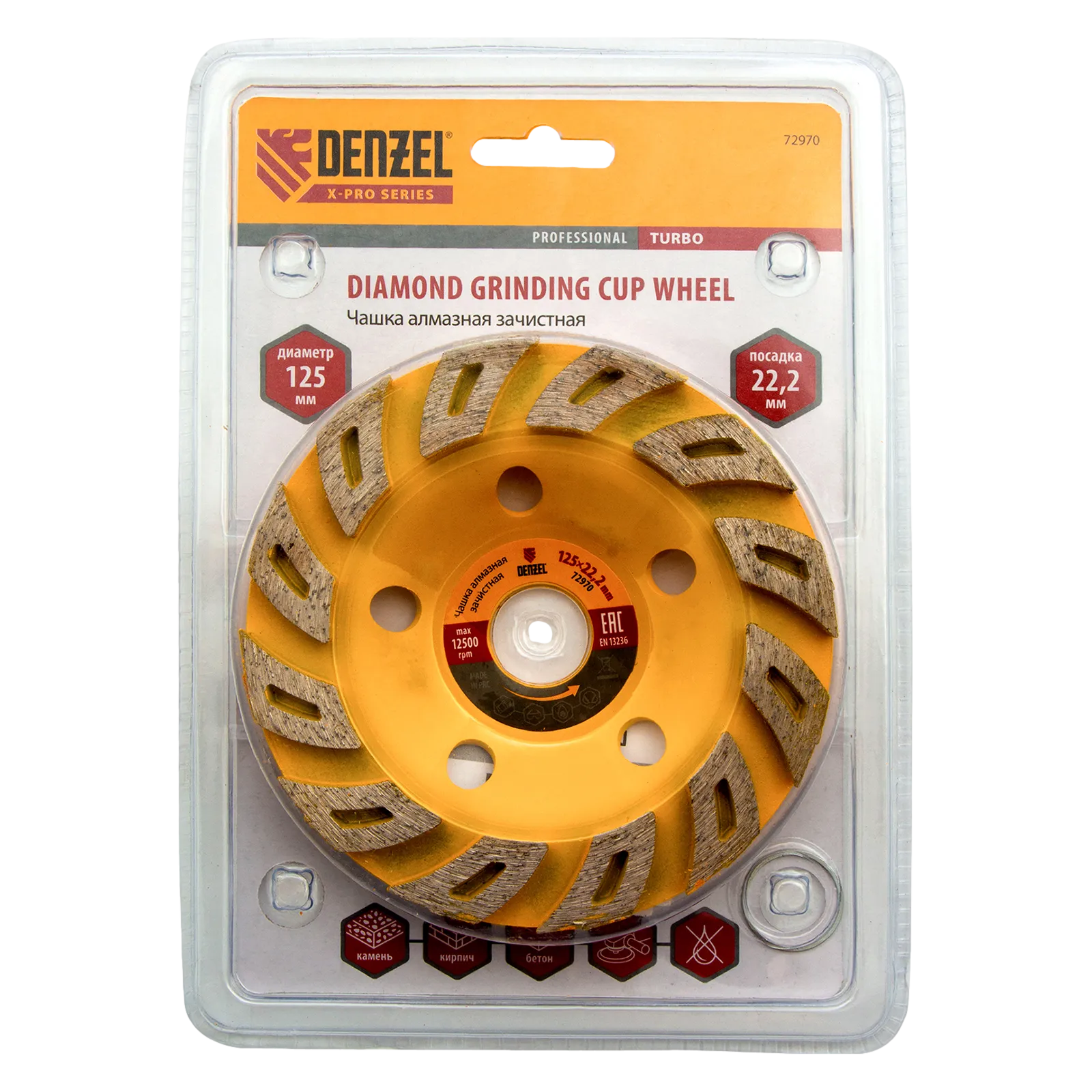 Алмазная зачистная чашка Denzel Турбо 72970 диаметром 125 мм имеет посадочный диаметр 22,2 мм и предназначена для установки на вал углошлифовальной машины. Используется для чистового шлифования бетона, камня, кирпича, гранита, мрамора. Эффективно удаляет мелкие неровности, придавая поверхности гладкость. Оптимально подобранная связка в сочетании с высокой концентрацией алмазов обеспечивает максимальную производительность чашки. Чашка рекомендована для профессионального использования.