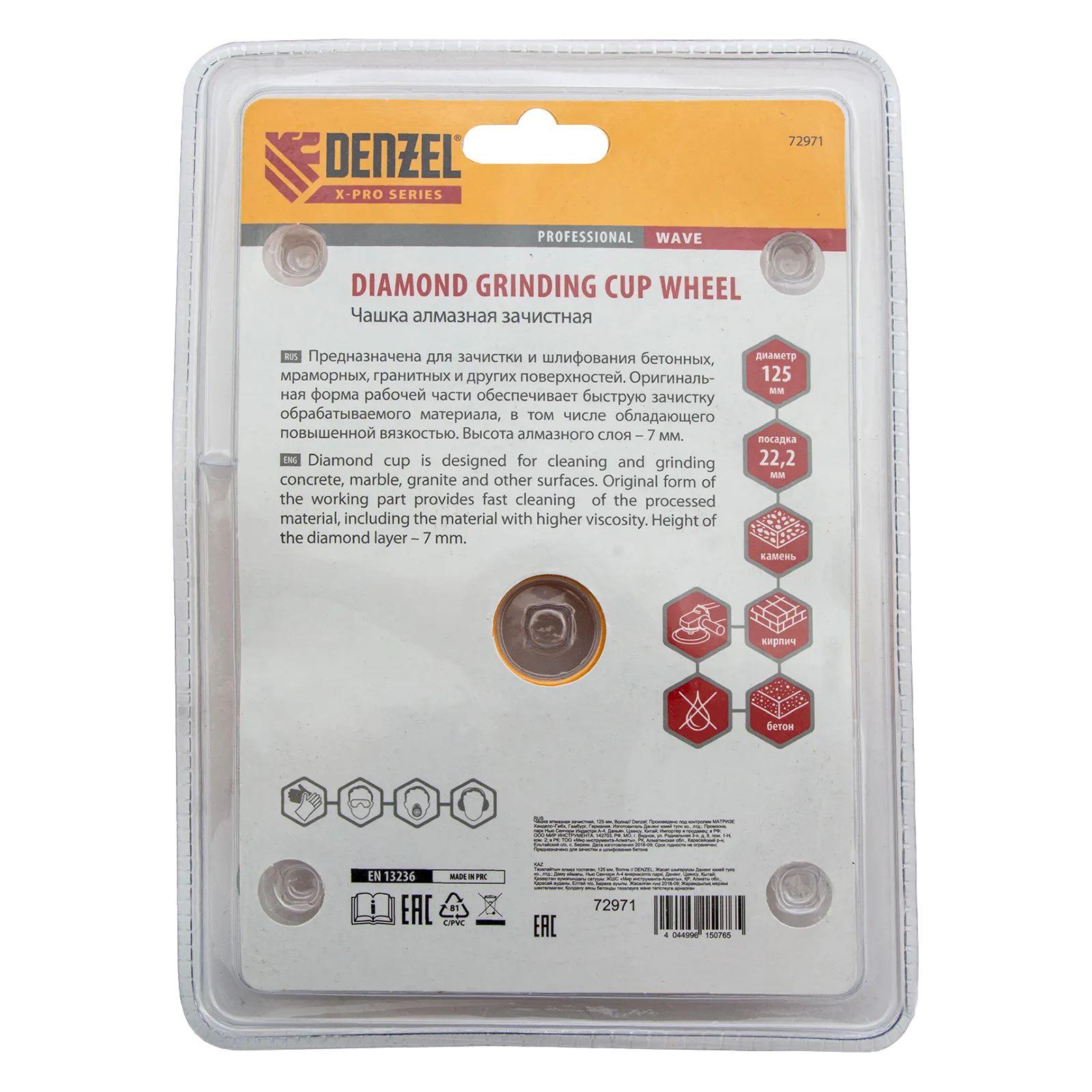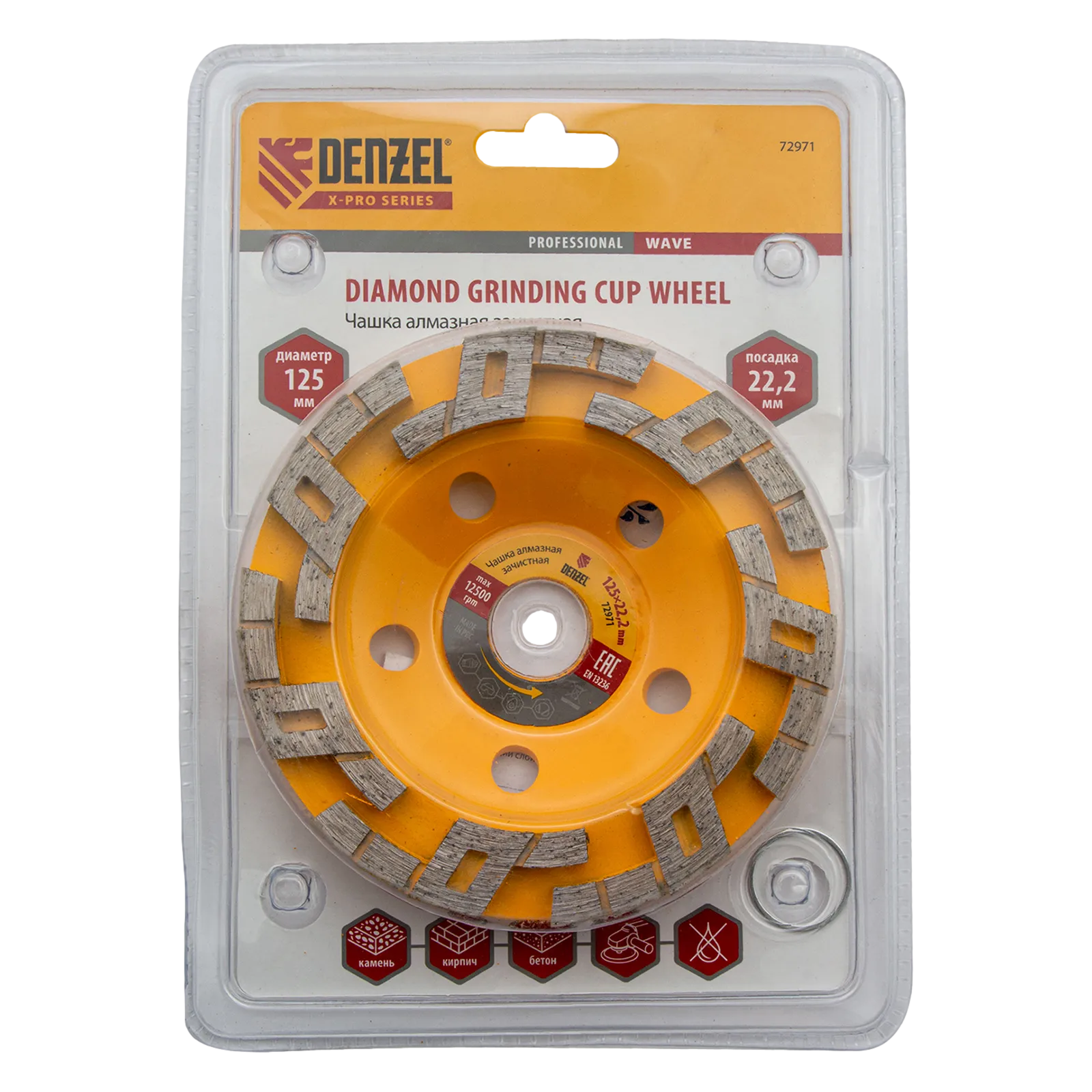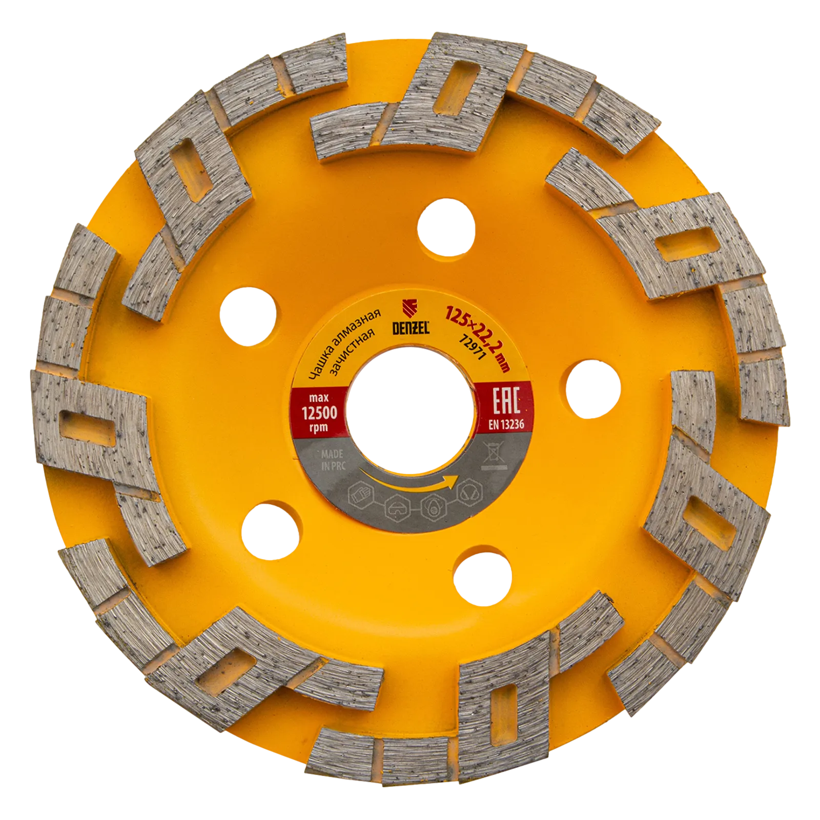 Алмазная зачистная чашка Denzel «Волна» 72971 диаметром 125 мм и посадочным отверстием 22,2 мм — оснастка для углошлифовальных машин. Подходит для чернового шлифования бетонных, каменных, кирпичных, мраморных и гранитных поверхностей. В этом случае для удаления наплывов, зачистки стыков и швов потребуется несколько проходов. Чашку также используют для придания гладкости обрабатываемой поверхности — алмазные сегменты особой формы легко справляются с мелкими неровностями, работая мягко и плавно. Высокая плотность алмазов в рабочем слое и оптимально подобранная связка обеспечивают эффективность насадки при обработке различных материалов. Чашка рекомендована для профессионального использования.