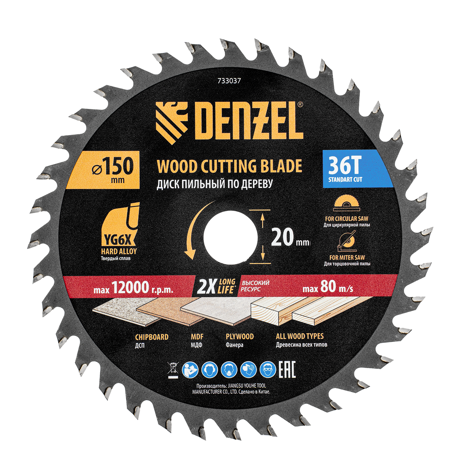 Тонкий пильный диск Denzel 733037 диаметром 150 x 20 мм, с 36 зубьями, устанавливается на циркулярную, торцовочную пилу или распиловочный станок и предназначен для выполнения работ по дереву. Подходит для распиливания древесины любого типа, а также фанеры, ДСП, МДФ. Зубья типа ATB обеспечивают высокое качество и скорость как продольного, так и поперечного распила. Тип реза — стандартный. Толщина диска уменьшена, что повышает производительность и снижает нагрузку на инструмент. На зубья напаяны твердосплавные пластины, длительное время сохраняющие режущую способность. Пластины из твердого сплава YG6X прошли многоступенчатую заточку, что позволило достичь оптимальной геометрии и максимальной эффективности распиловки.