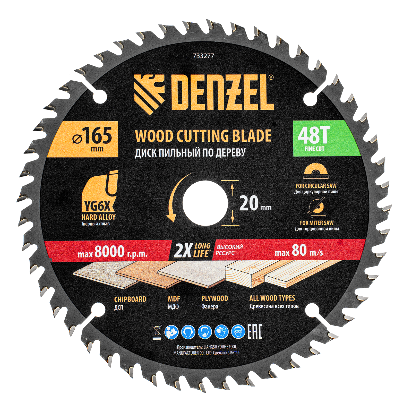 Тонкий пильный диск Denzel 733277 диаметром 165 x 20 мм, с 48 зубьями, устанавливается на циркулярную, торцовочную пилу или распиловочный станок и предназначен для выполнения работ по дереву. Подходит для распиливания древесины любого типа, а также фанеры, ДСП, МДФ. Зубья типа ATB обеспечивают высокое качество и скорость как продольного, так и поперечного распила. Тип реза — стандартный. Толщина диска уменьшена, что повышает производительность и снижает нагрузку на инструмент. На зубья напаяны твердосплавные пластины, длительное время сохраняющие режущую способность. Пластины из твердого сплава YG6X прошли многоступенчатую заточку, что позволило достичь оптимальной геометрии и максимальной эффективности распиловки.
