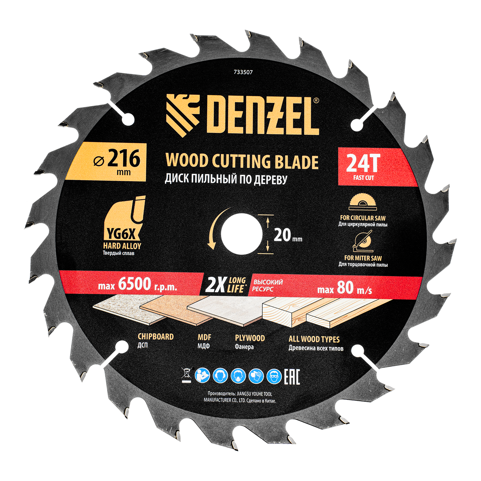 Пильный диск Denzel 733507 диаметром 216 x 20 мм, с 24 зубьями, предназначен для продольного и поперечного распила твердой и мягкой древесины, фанеры, МДФ, ДСП. 24 зуба типа ATB с режущими пластинами оптимальной геометрии обеспечивают быстрый рез. Режущие пластины из твердого сплава YG6X сохраняют рабочие свойства при интенсивном использовании. Диск устанавливается на циркулярную, торцовочную пилу или на распиловочный станок. В комплект поставки входит переходное кольцо с 20 на 16 мм, что позволяет изменить посадочный размер и расширяет возможности использования диска.