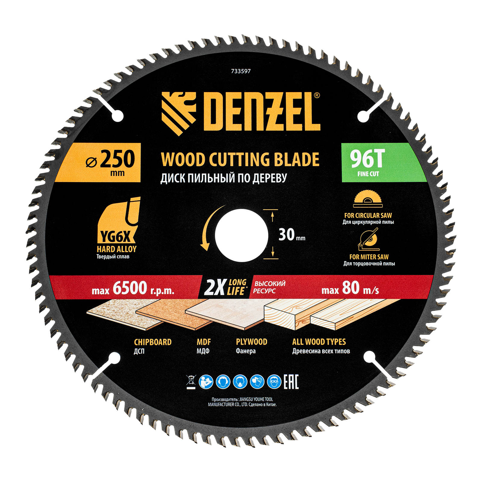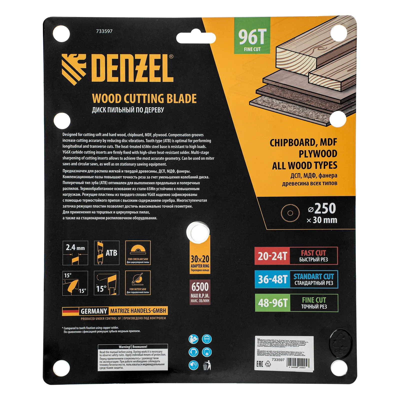 Пильный диск Denzel 733597 диаметром 250 x 30 мм, с 96 зубьями, предназначен для точного продольного и поперечного распила твердой и мягкой древесины, фанеры, МДФ, ДСП. 96 зубьев типа ATB с режущими пластинами оптимальной геометрии обеспечивают максимально чистый рез. Режущие пластины из твердого сплава YG6X сохраняют рабочие свойства при интенсивном использовании. Диск устанавливается на циркулярную, торцовочную пилу или на распиловочный станок. В комплект поставки входит переходное кольцо с 30 на 20 мм, что позволяет изменить посадочный размер и расширяет возможности использования диска.