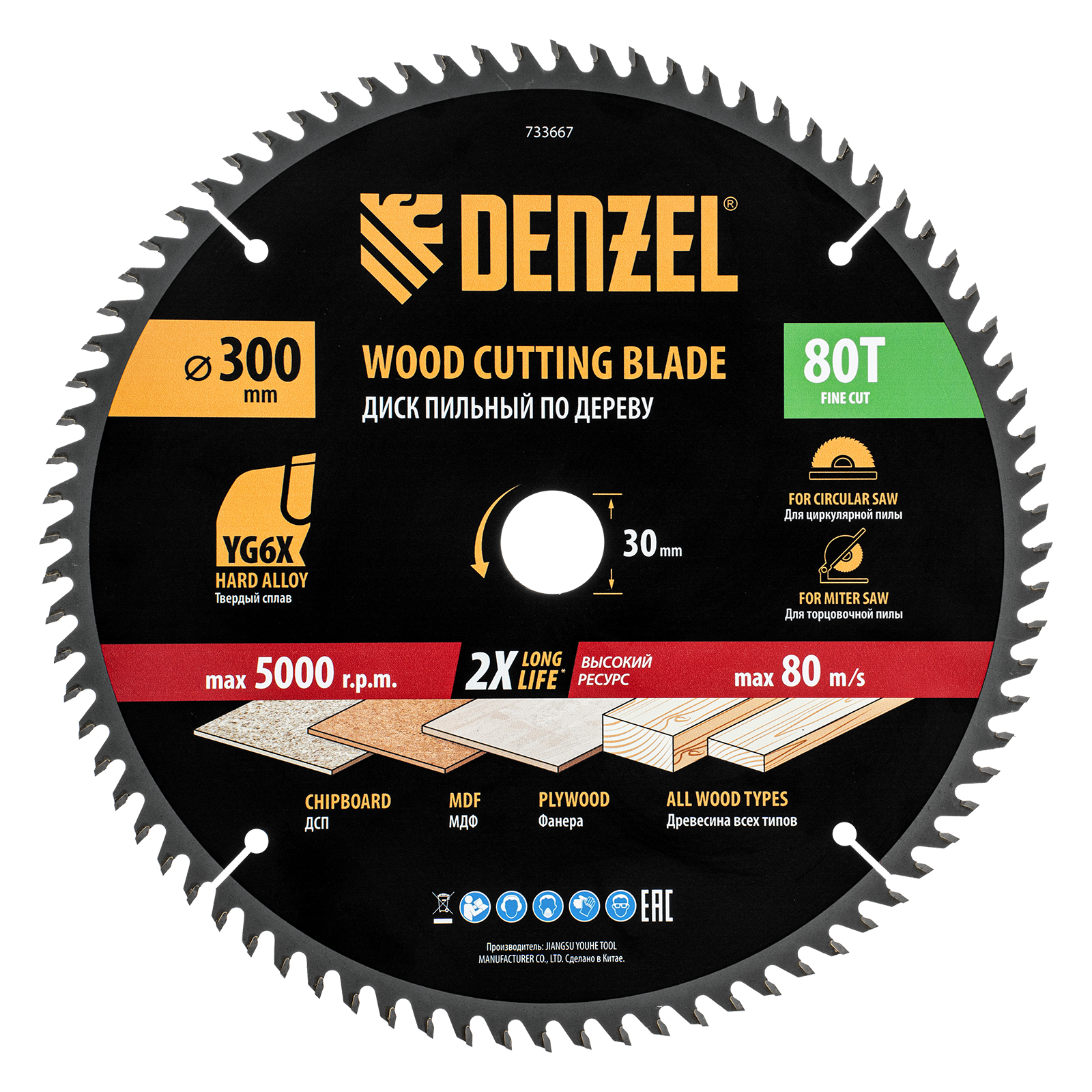 Пильный диск Denzel 733667 диаметром 300 x 30 мм, с 80 зубьями, предназначен для точного продольного и поперечного распила твердой и мягкой древесины, фанеры, МДФ, ДСП. 80 зубьев типа ATB с режущими пластинами оптимальной геометрии обеспечивают максимально чистый рез. Режущие пластины из твердого сплава YG6X сохраняют рабочие свойства при интенсивном использовании. Диск устанавливается на циркулярную, торцовочную пилу или на распиловочный станок. В комплект поставки входит переходное кольцо с 30 на 20 мм, что позволяет изменить посадочный размер и расширяет возможности использования диска.