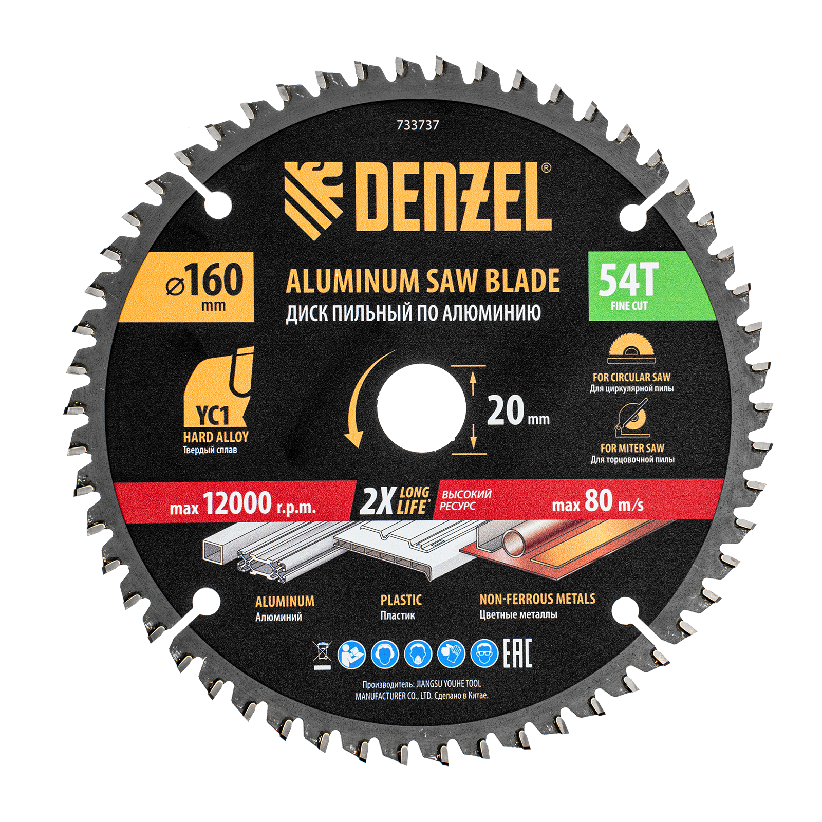 Пильный диск Denzel 733737 диаметром 160 x 20 мм, с 54 зубьями, предназначен для точного распиливания заготовок из алюминия, пластика, цветных металлов. Устанавливается на циркулярную или торцовочную пилу, поддерживающую максимальную частоту вращения 12000 об/мин, также возможно использование с распиловочным станком. Зубья трапециевидно-плоского типа (TCG) с отрицательным углом заточки обеспечивают ровный рез без сколов. В комплект поставки входит переходное кольцо 20/16 мм, позволяющее изменить посадочный диаметр при необходимости.