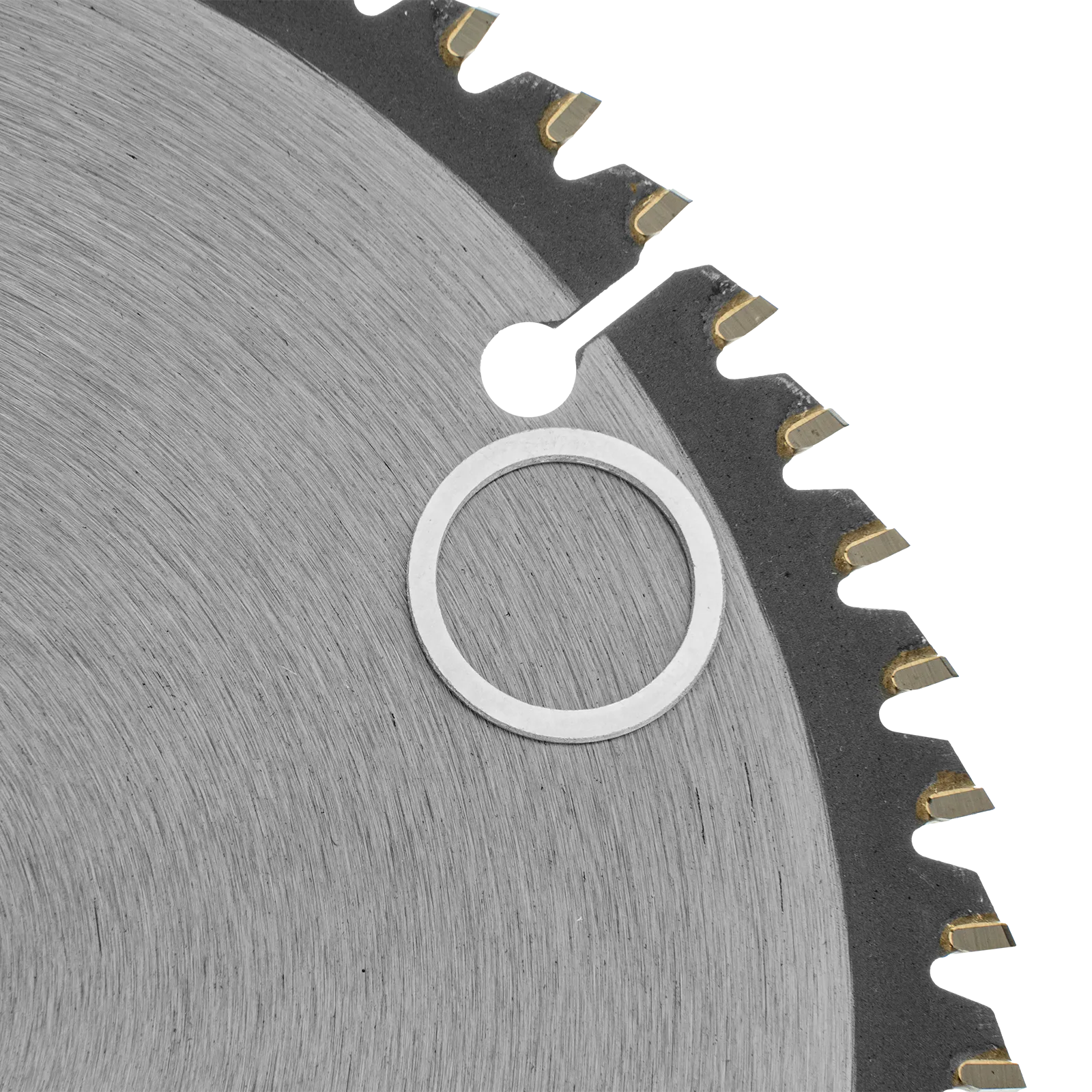 Пильный диск Denzel 733747 диаметром 165 x 20 мм, с 60 зубьями, предназначен для распиливания заготовок из алюминия, пластика, цветных металлов. Устанавливается на циркулярную или торцовочную пилу, поддерживающую максимальную частоту вращения 12000 об/мин, также возможно использование с распиловочным станком. Зубья трапециевидно-плоского типа (TCG) с отрицательным углом заточки обеспечивают ровный рез без сколов. В комплект поставки входит переходное кольцо 20/16 мм, позволяющее изменить посадочный диаметр при необходимости.