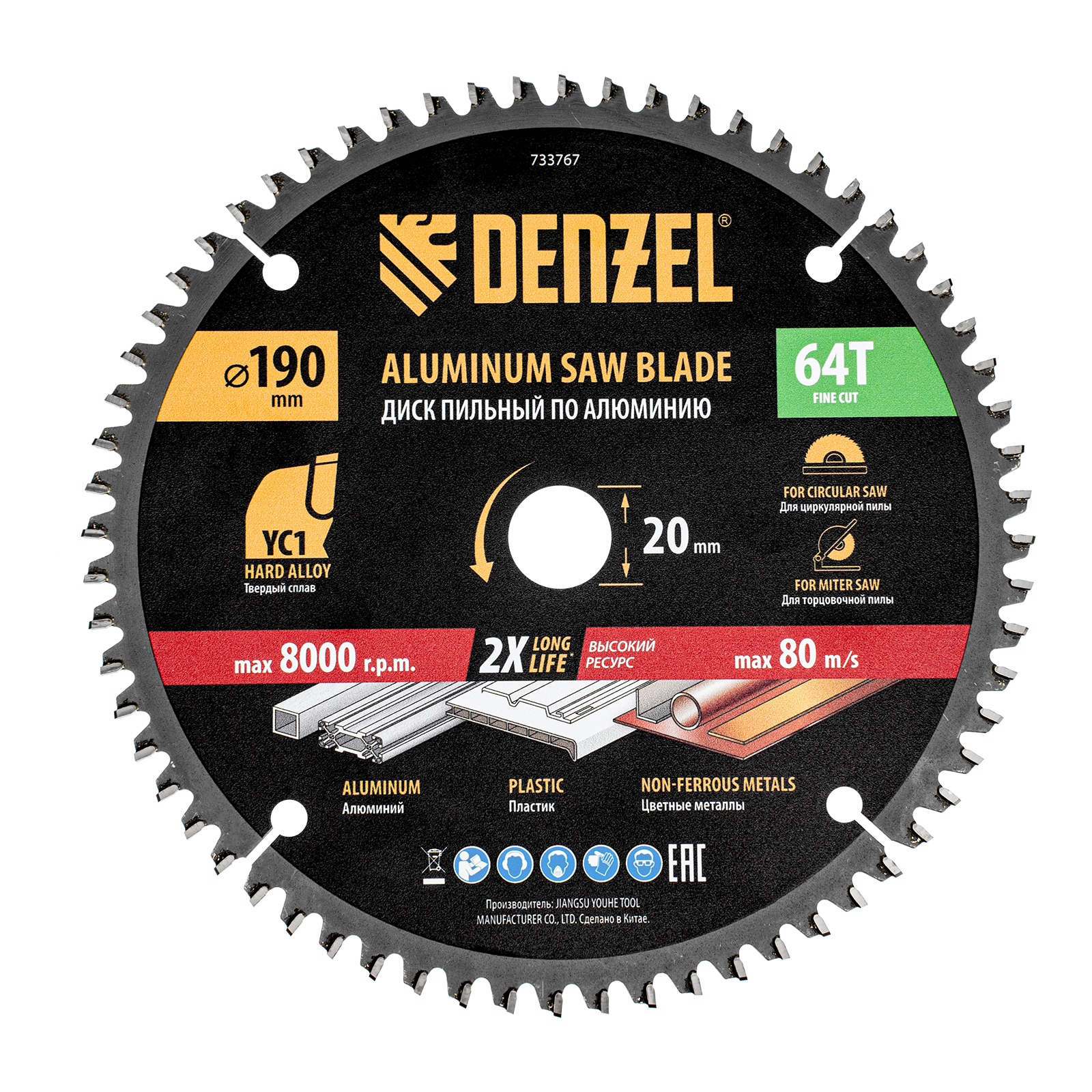 Пильный диск Denzel 733767 диаметром 190 x 20 мм, с 64 зубьями, предназначен для точного распиливания заготовок из алюминия, пластика, цветных металлов. Устанавливается на циркулярную или торцовочную пилу, также возможно использование с распиловочным станком. Зубья трапециевидно-плоского типа (TCG) с отрицательным углом заточки обеспечивают ровный рез без сколов. В комплект поставки входит переходное кольцо 20/16 мм, позволяющее изменить посадочный диаметр при необходимости.