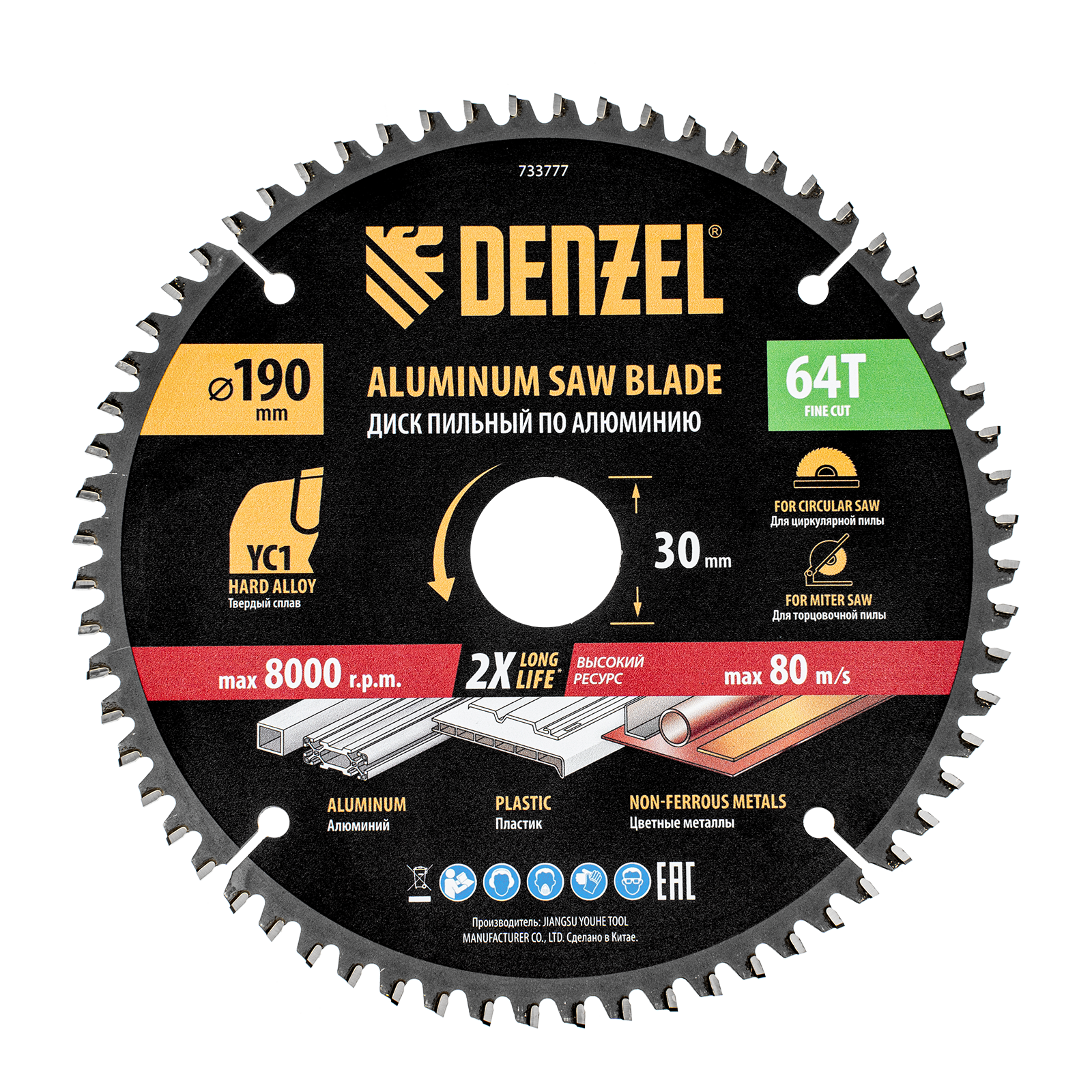 Пильный диск Denzel 733777 диаметром 190 x 30 мм, с 64 зубьями, предназначен для точного распиливания заготовок из алюминия, пластика, цветных металлов. Устанавливается на циркулярную или торцовочную пилу, также возможно использование с распиловочным станком. Зубья трапециевидно-плоского типа (TCG) с отрицательным углом заточки обеспечивают ровный рез без сколов. В комплект поставки входит переходное кольцо 30/20 мм, позволяющее изменить посадочный диаметр при необходимости.