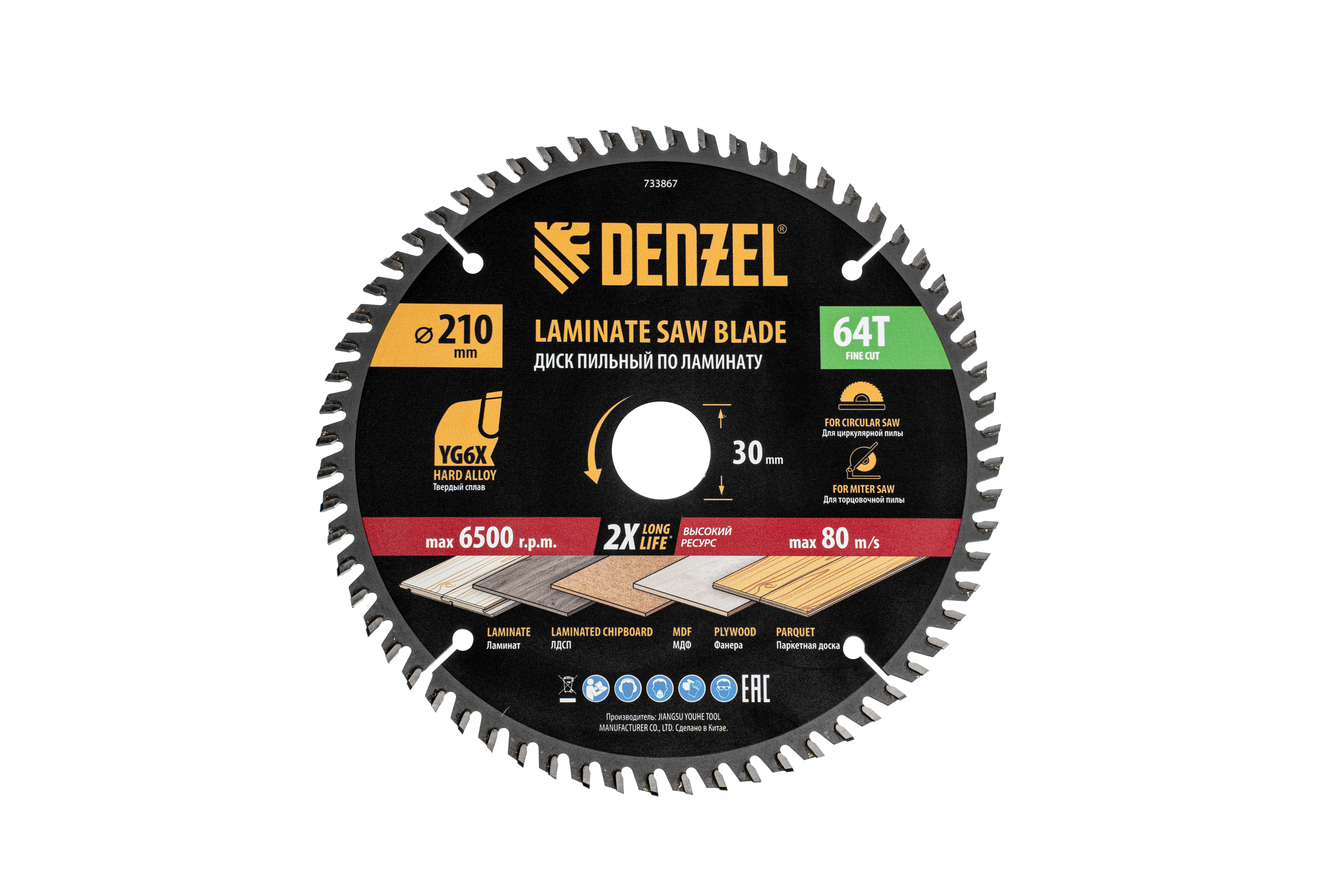 Пильный диск Denzel 733867 диаметром 210 x 30 мм, с 64 зубьями, используется для точного распиливания ламината, ЛДСП, МДФ, фанеры, паркетной доски. 64 мелких трапециевидно-плоских зубьев с положительным углом заточки позволяют эффективно решать поставленные задачи, обеспечивая чистый рез. Диск устанавливается на циркулярную или торцовочную пилу, а также на распиловочный станок. Можно установить оснастку на инструмент с другим посадочным диаметром — для этого предусмотрено переходное кольцо 30/20 мм.