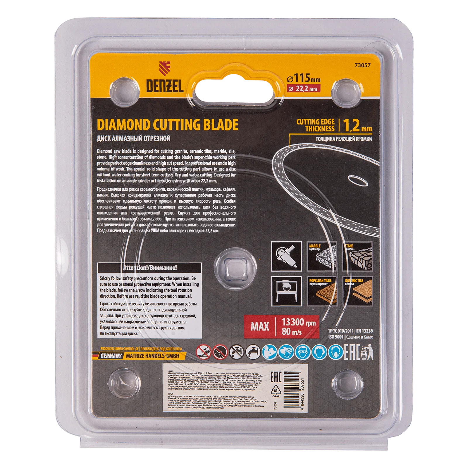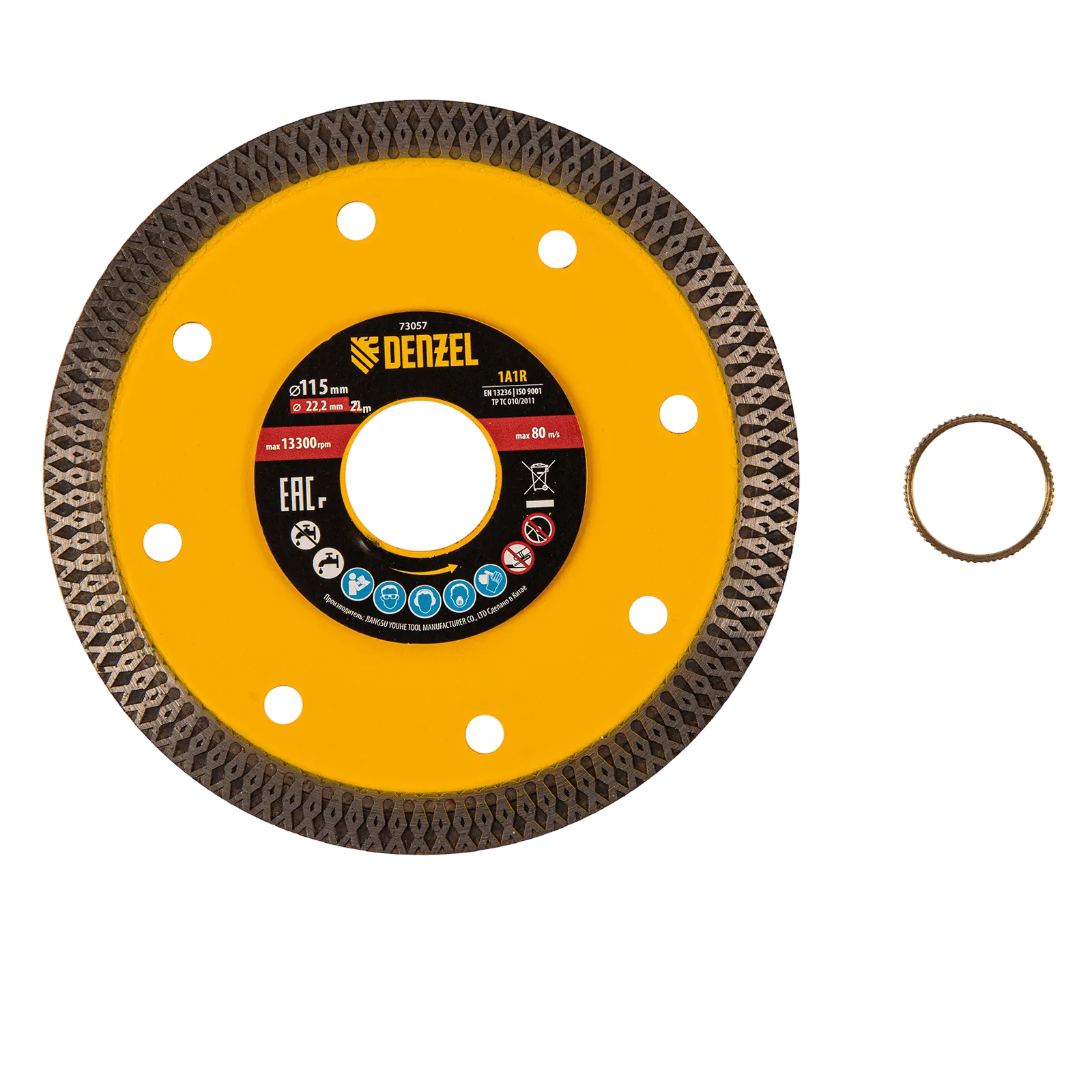 Сплошной отрезной алмазный диск Denzel 73057 диаметром 115 x 22,2 мм, супертонкий, изготовлен по технологии горячего прессования и предназначен для сухого и мокрого реза керамогранита, керамической плитки, мрамора, кафеля, камня. Устанавливается на углошлифовальную машину или плиткорез с соответствующим посадочным диаметром, подходит для выполнения большого объема работ.