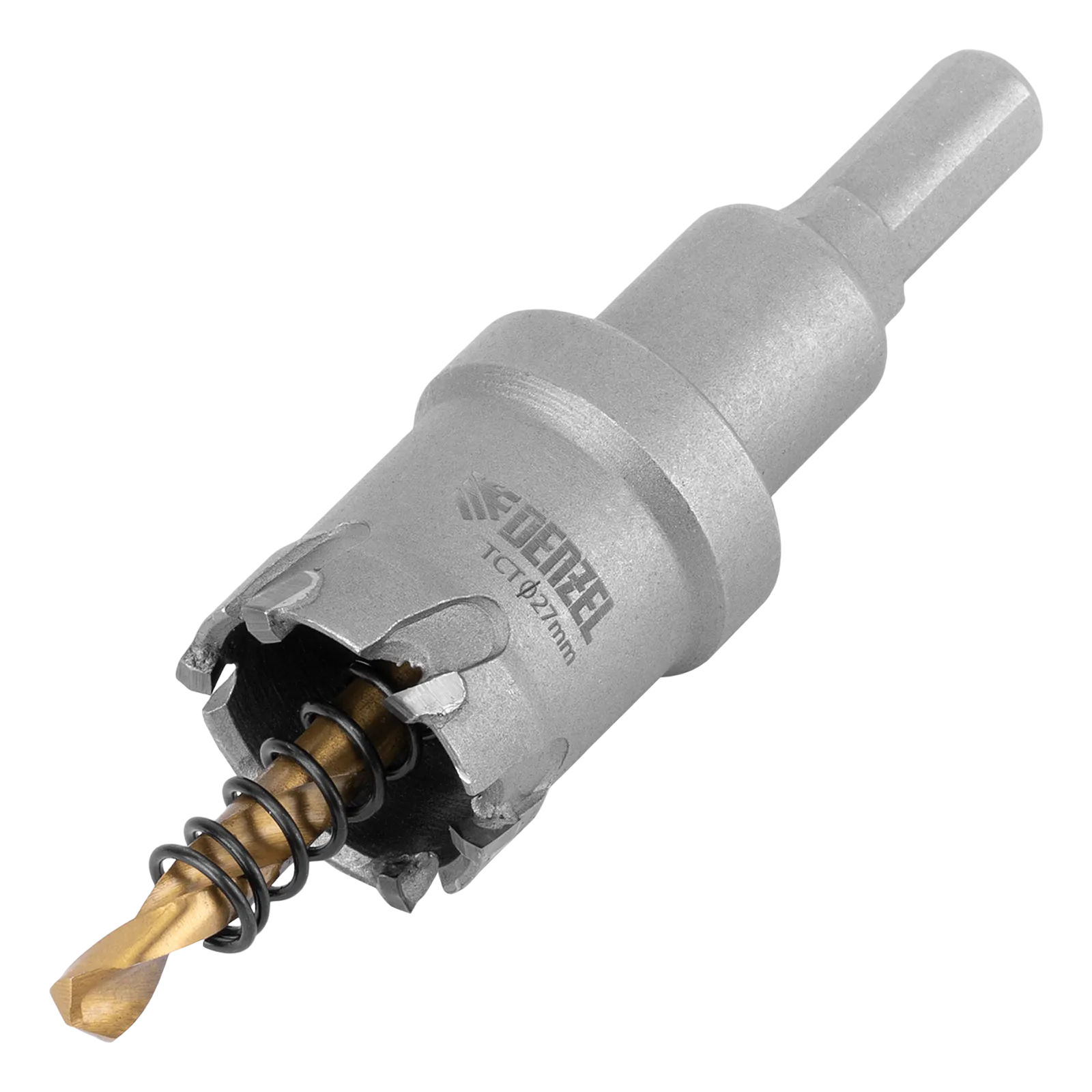 Твердосплавная коронка Denzel 724007 диаметром 27 мм используется для сверлильных работ по черным, цветным металлам, пластику и другим материалам. Позволяет получить отверстия большего диаметра в сравнении с обычным сверлом. Твердосплавные зубья легко выдерживают интенсивные нагрузки, поэтому коронка подходит не только для бытового, но и для профессионального применения.