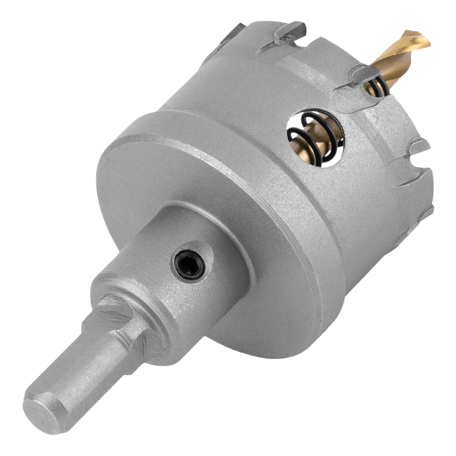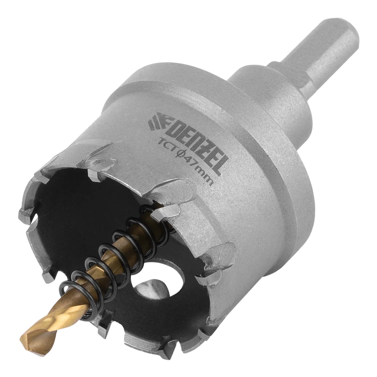 Твердосплавная коронка Denzel 724015 диаметром 47 мм используется для сверлильных работ по черным, цветным металлам, пластику и другим материалам. Позволяет получить отверстия большего диаметра в сравнении с обычным сверлом. Твердосплавные зубья легко выдерживают интенсивные нагрузки, поэтому коронка подходит не только для бытового, но и для профессионального применения.