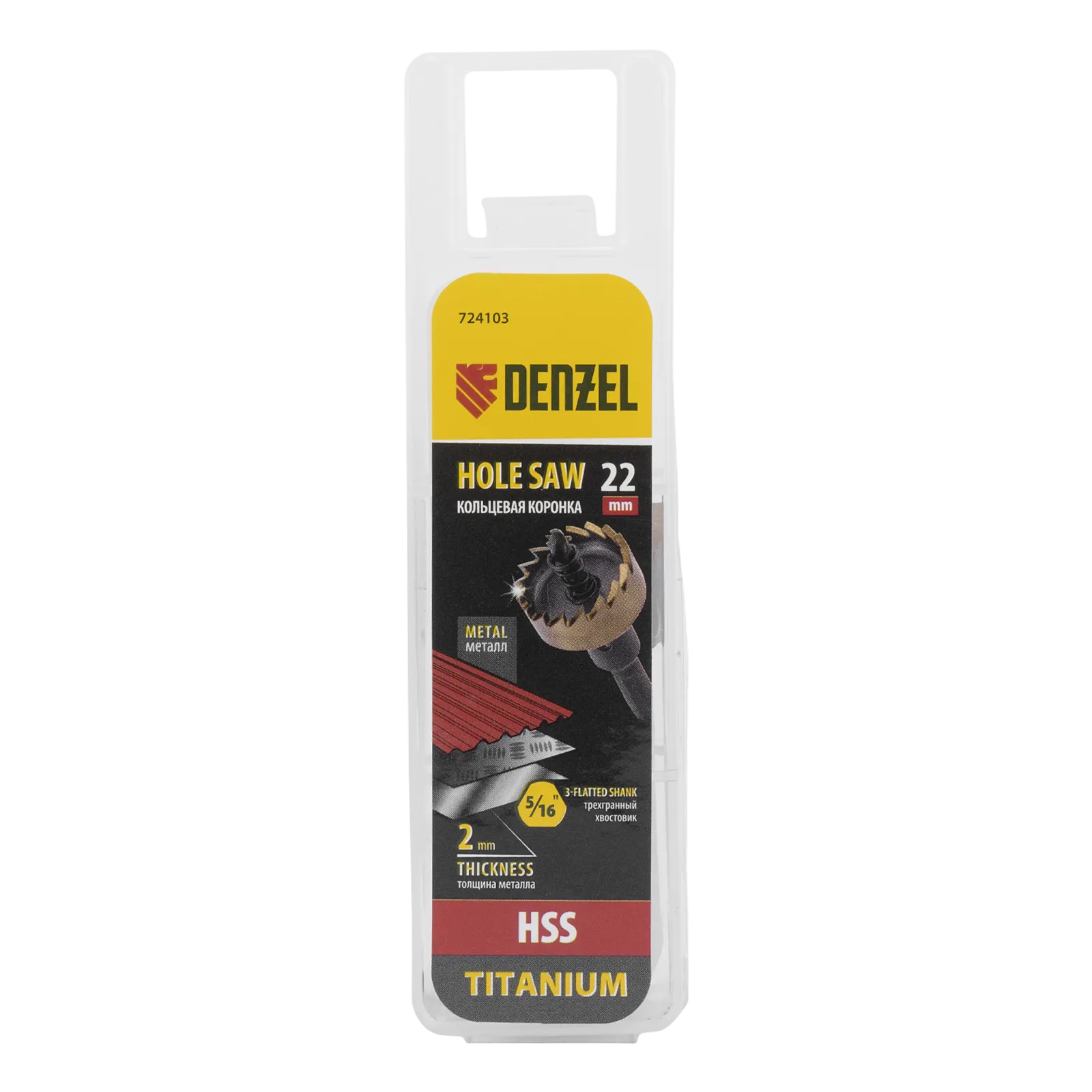 Коронка Denzel 724103 диаметром 22 мм, из стали HSS, с нитридтитановым покрытием, применяется для сверления отверстий в черных, цветных металлах, пластике и других материалах. Рассчитана на профессиональное использование на строительной площадке. Коронка пригодится при прокладке коммуникаций, монтаже оборудования, крепежных элементов и различных конструкций.