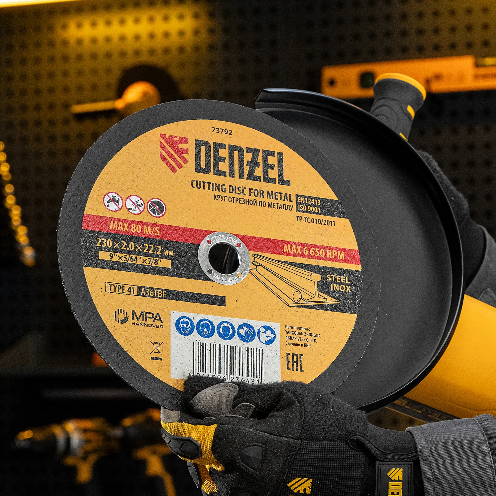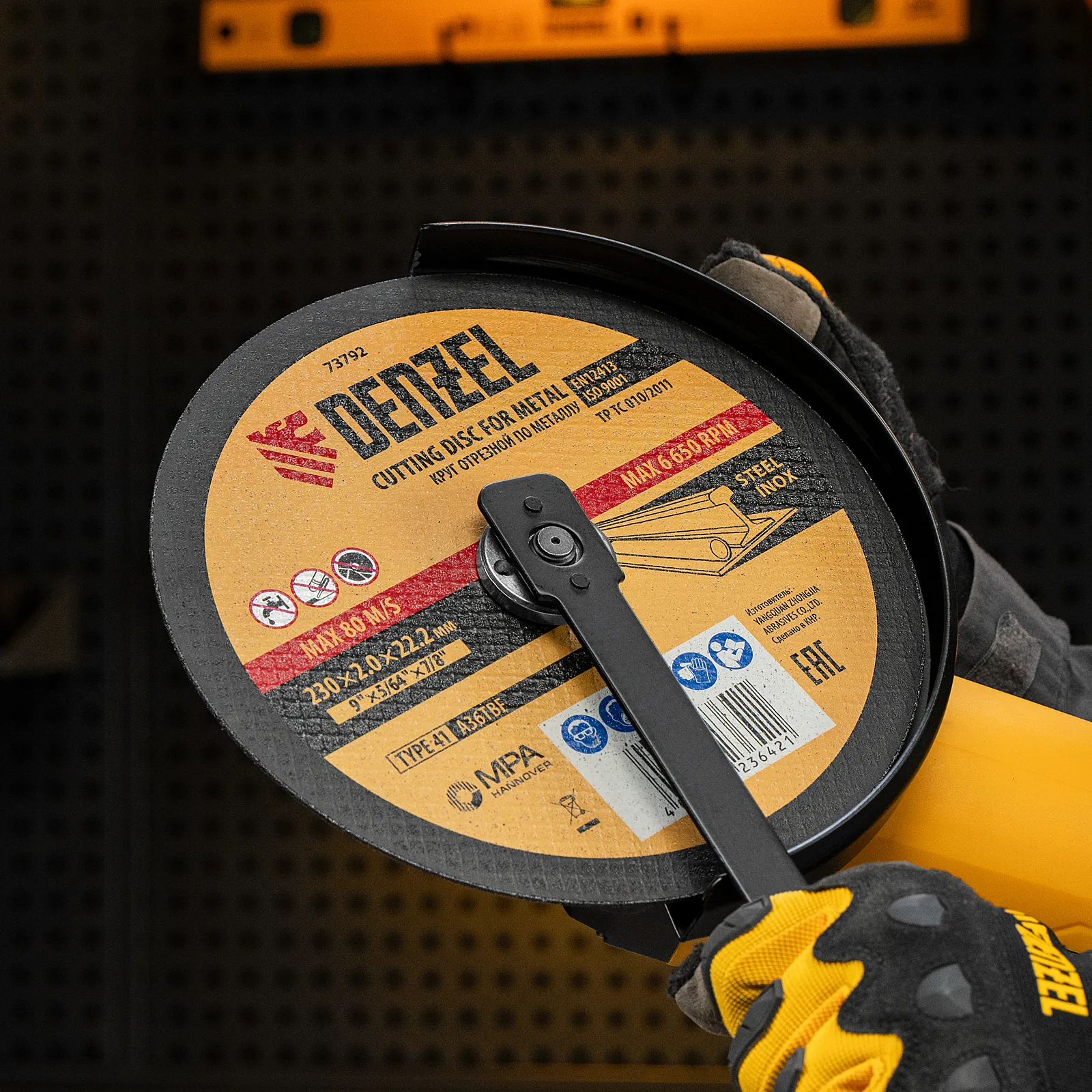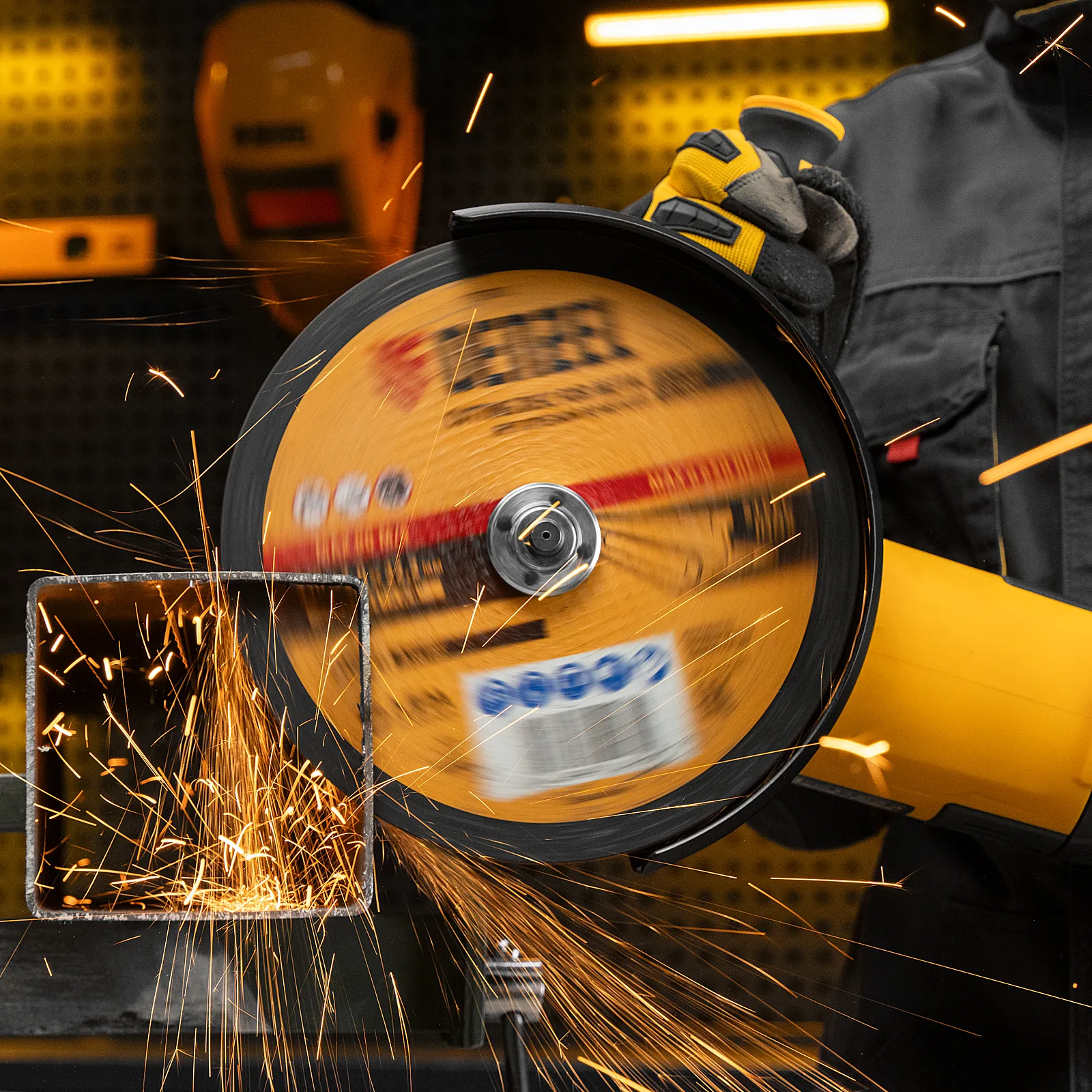 - Высокий ресурс — благодаря толщине 2 мм и средней по плотности структуре круг стабильно режет сталь даже при больших объемах работ.
