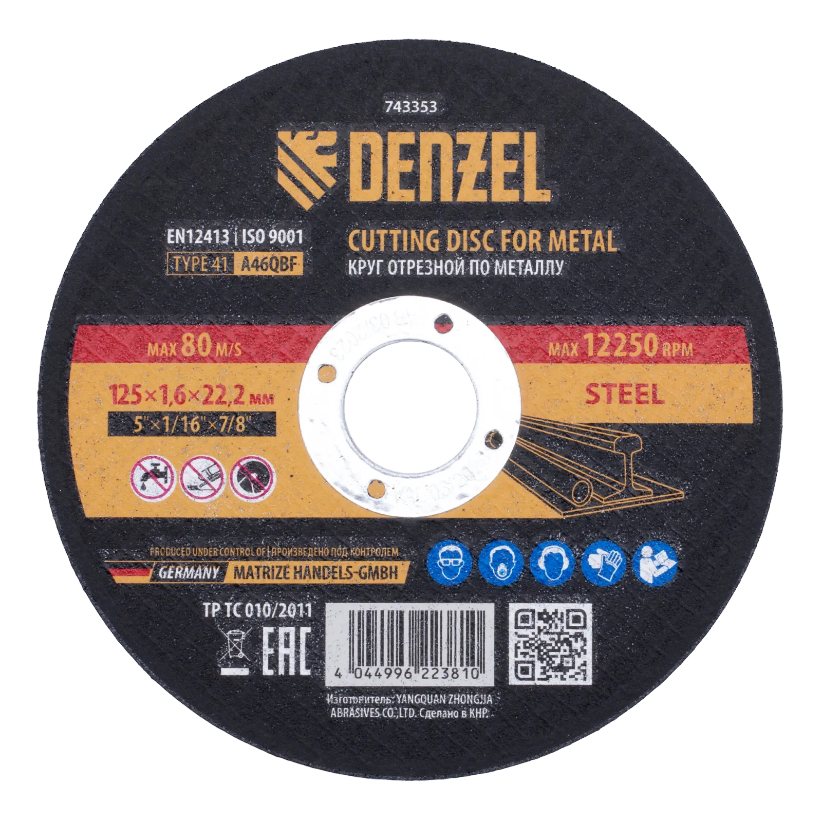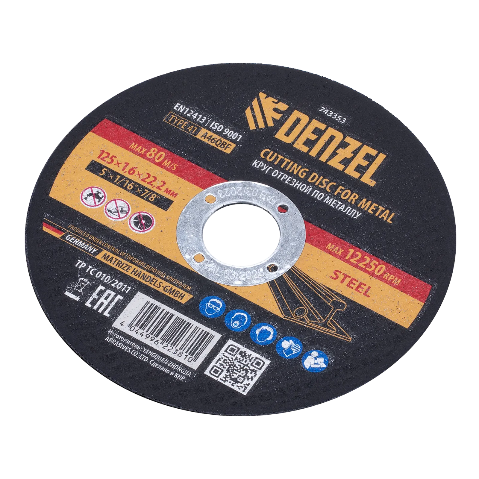 Круг отрезной по металлу Denzel 743353 (A46QBF) размером 125 х 1,6 х 22,2 мм оптимально подходит для реза углеродистых сталей. Используется на УШМ с посадочным диаметром 22,2 мм. Круг рассчитан на профессиональное и бытовое использование.