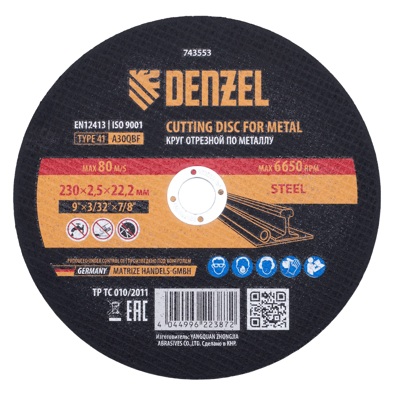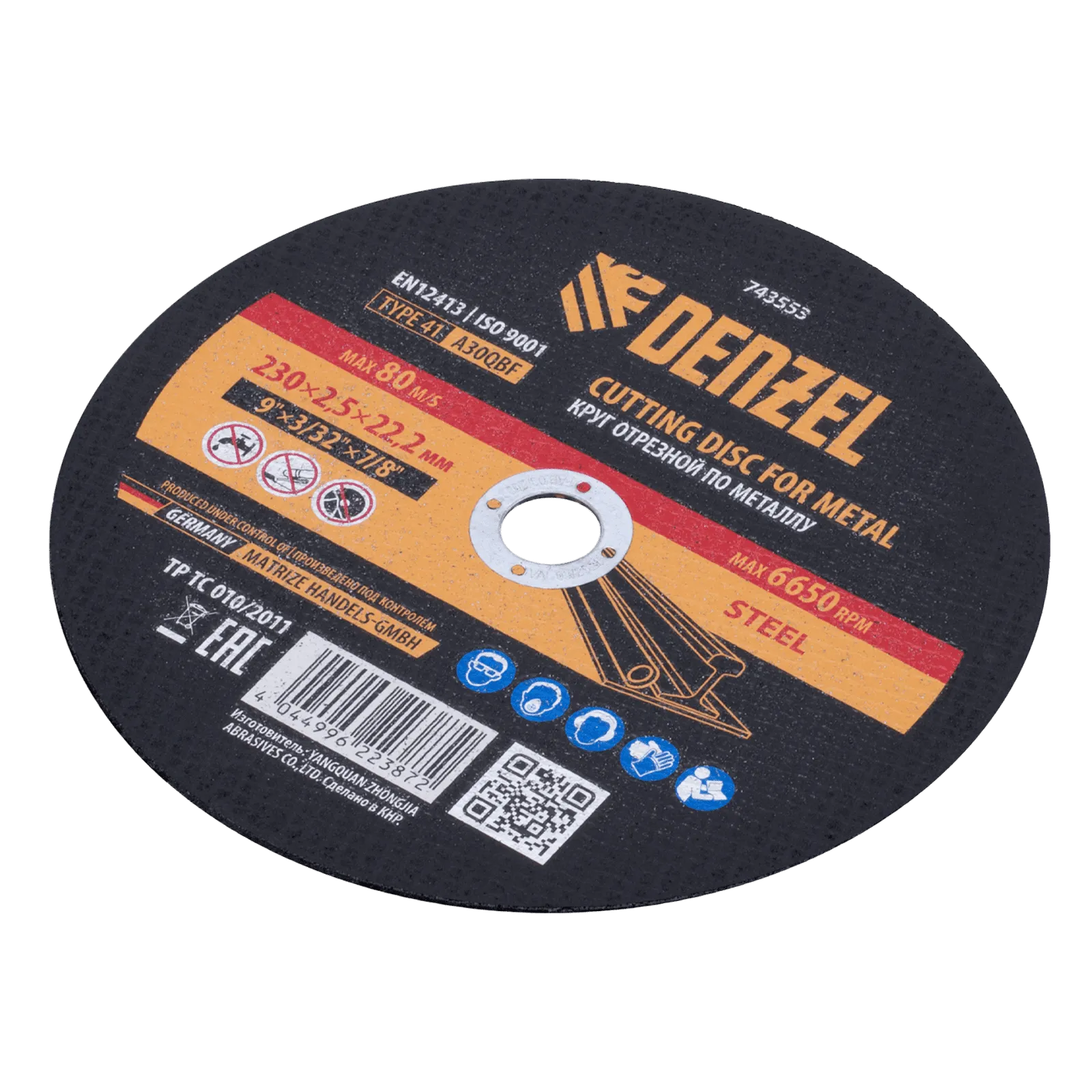 Круг отрезной по металлу Denzel 743553 (A30QBF) размером 230 х 2,0 х 22,2 мм оптимально подходит для реза углеродистых сталей. Используется на УШМ с посадочным диаметром 22,2 мм. Круг рассчитан на профессиональное и бытовое использование.