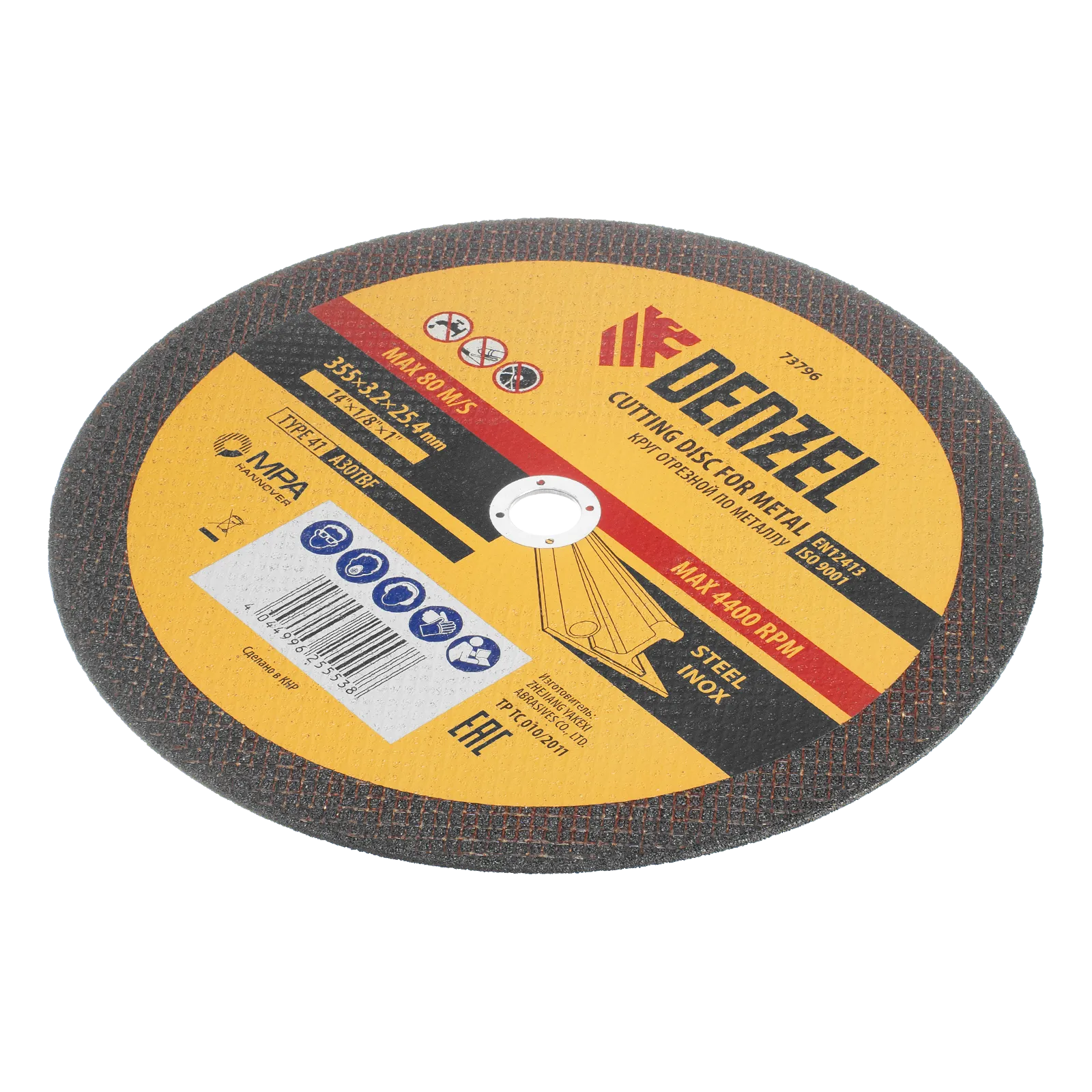 Отрезной круг по металлу Denzel A30TBF 73796 диаметром 355 мм и толщиной 3,2 мм устанавливается на углошлифовальную машину или станок с посадочным размером 25,4 мм. Предназначен для сухого резания углеродистых и нержавеющих сталей. Максимальная частота вращения составляет 4400 об/мин. Круг пригодится в слесарной мастерской.