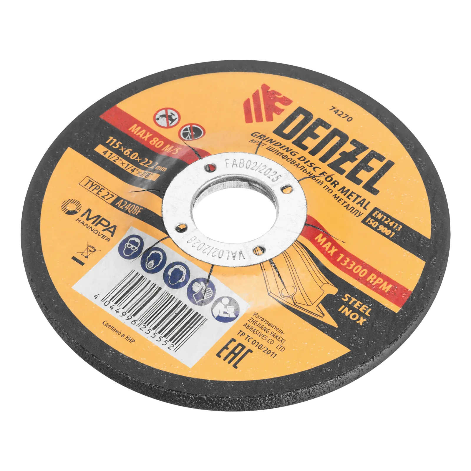 Шлифовальный круг Denzel A24QBF 74270 диаметром 115 мм и толщиной 6,0 мм устанавливается на фланец углошлифовальной машины с посадочным размером 22,2 мм. Максимальная частота вращения составляет 13300 об/мин. Круг предназначен для ручной обработки углеродистых и нержавеющих сталей без использования смазочно-охлаждающих жидкостей. Позволяет эффективно шлифовать поверхности, зачищать сварные швы и кромки после реза, удалять заусенцы, окалину и прочие дефекты. Круг пригодится в слесарной мастерской.