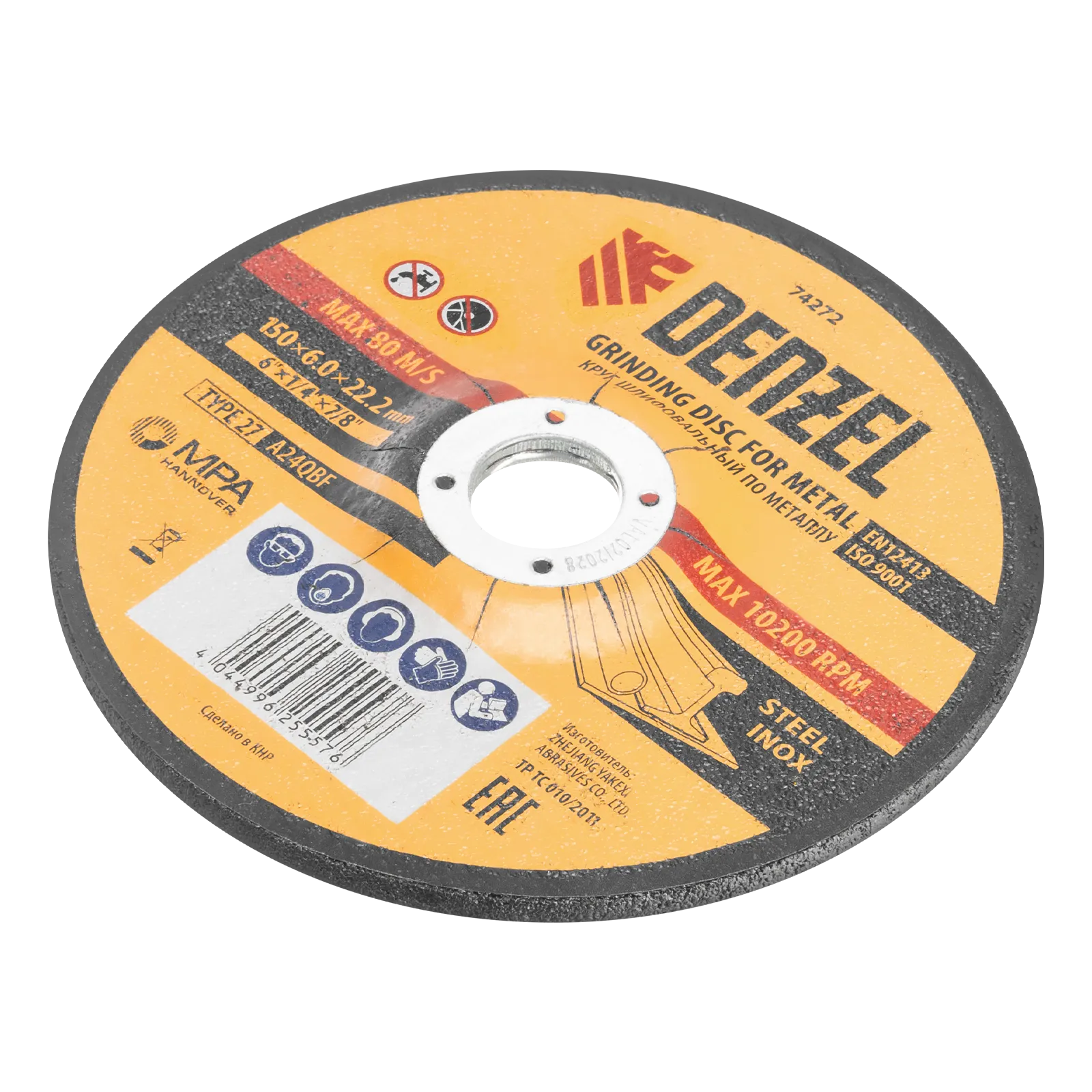 Шлифовальный круг Denzel A24QBF 74272 диаметром 150 мм и толщиной 6,0 мм устанавливается на фланец углошлифовальной машины с посадочным размером 22,2 мм. Максимальная частота вращения составляет 10200 об/мин. Круг предназначен для ручной обработки углеродистых и нержавеющих сталей без использования смазочно-охлаждающих жидкостей. Позволяет эффективно шлифовать поверхности, зачищать сварные швы и кромки после реза, удалять заусенцы, окалину и прочие дефекты. Круг пригодится в слесарной мастерской.