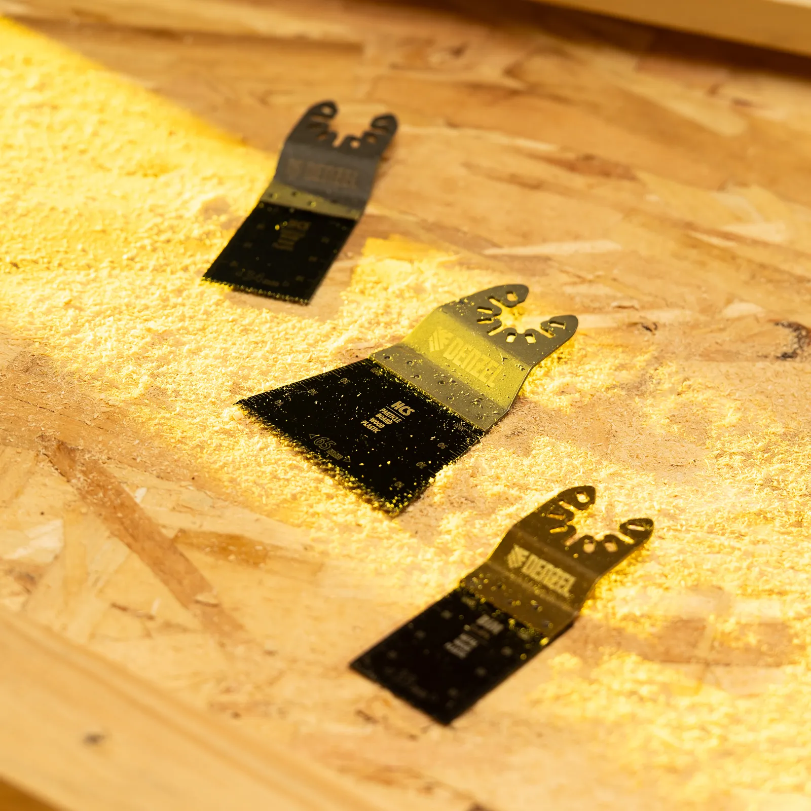 Набор Denzel 782403 состоит из 3 насадок по дереву, металлу и пластику, которые устанавливаются на МФИ. Благодаря ему можно осуществить широкий спектр работ: разрезать трубы, профильные листы, выполнить рез материалов, осуществить выборку пазов и др.
