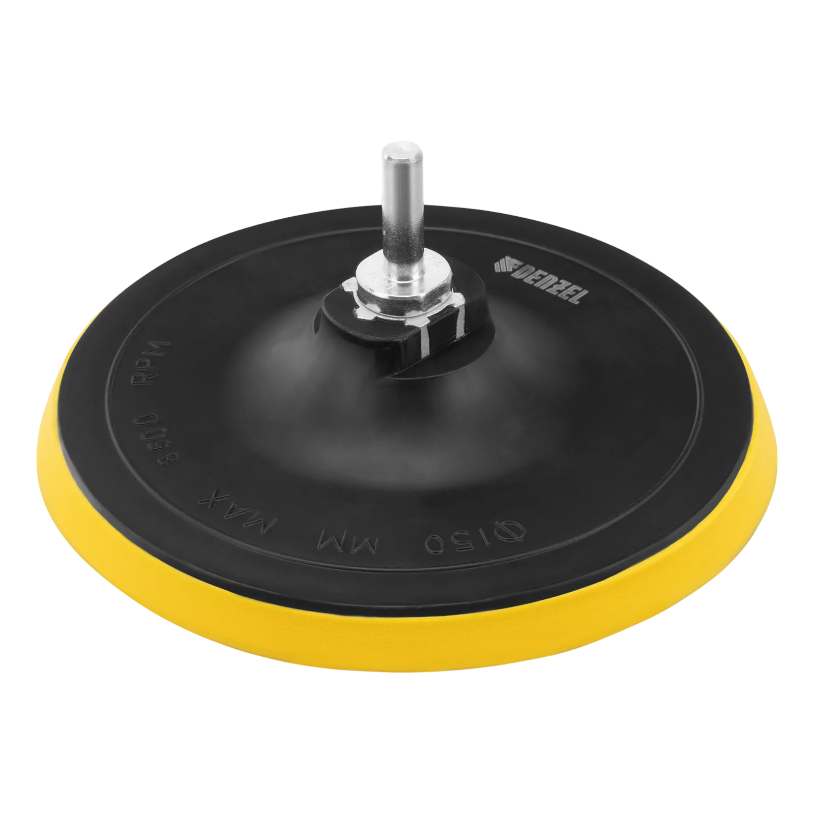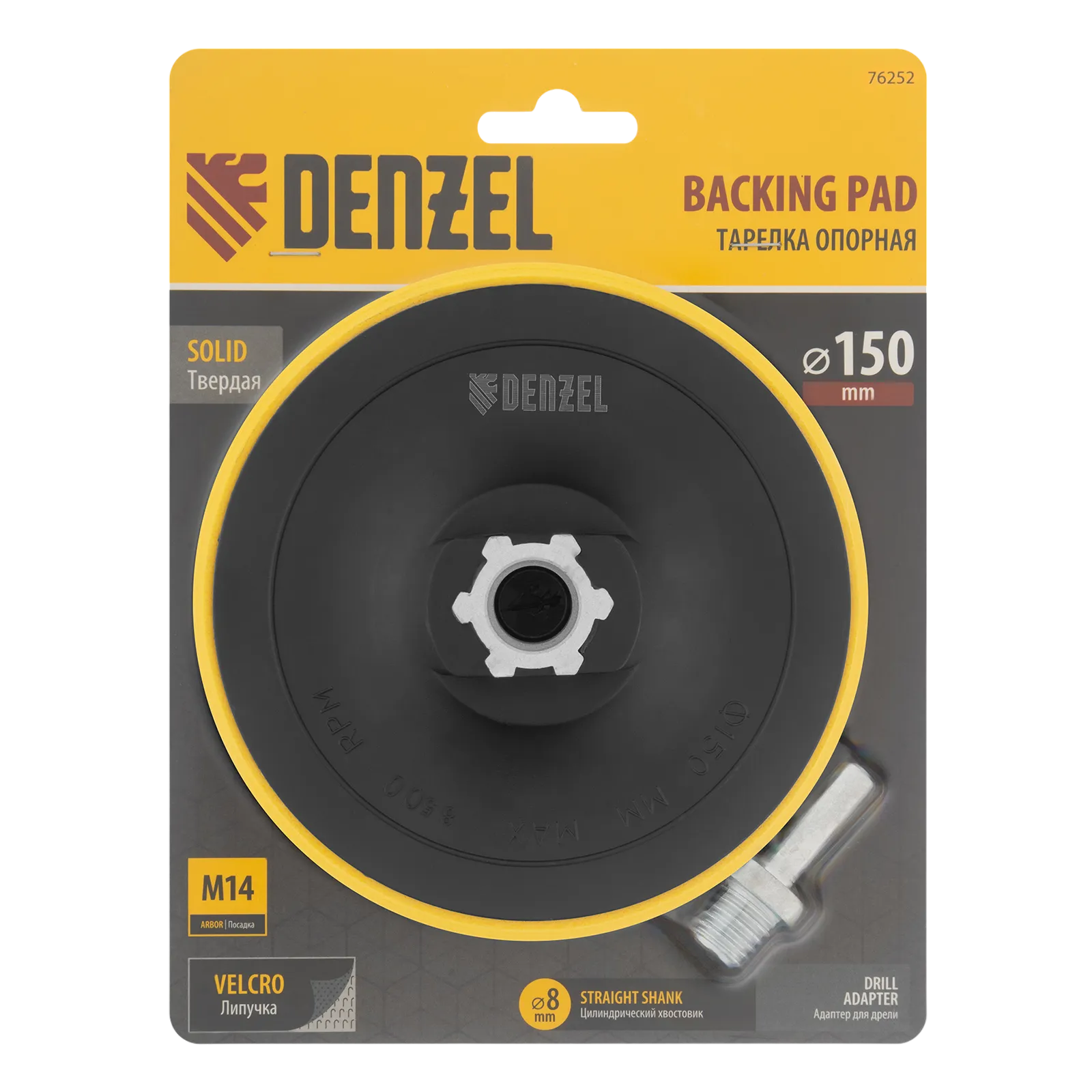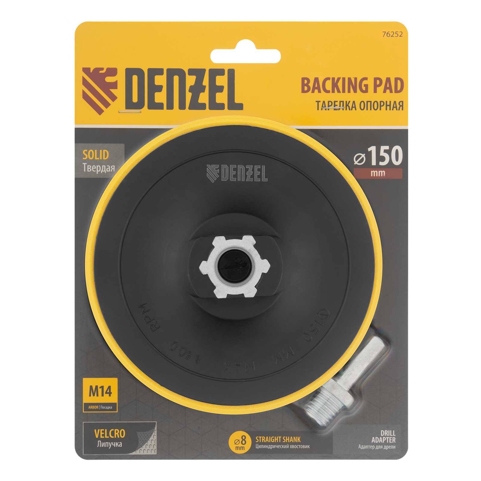 Тарелка опорная Denzel 76252 диаметром 150 мм, с липучкой и адаптером с М14 на d8, стандартная, устанавливается на дрель или углошлифовальную машину (УШМ). Используется для крепления абразивных или полировальных кругов на ворсовой основе, позволяет подготовить поверхность для дальнейшей обработки или придать ей финишную гладкость.