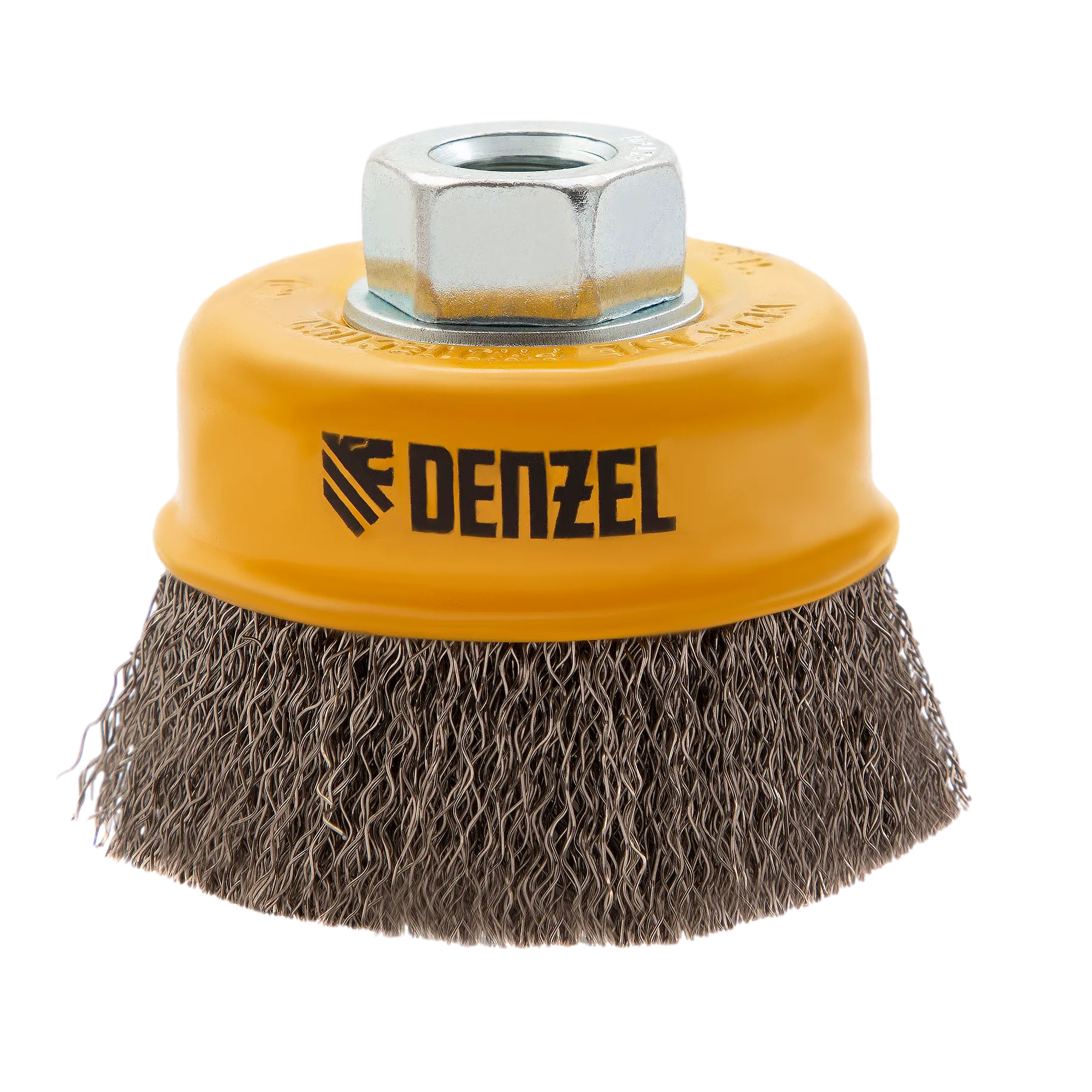 Щетка для УШМ «Чашка» Denzel 746043 с гайкой М14, диаметром 75 мм, с щетиной из витой нержавеющей проволоки диаметром 0,3 мм, позволяет быстро и аккуратно очистить металлическую, деревянную или пластиковую поверхность от незначительных загрязнений и ржавчины, а также удалить остатки лакокрасочных материалов, сделать поверхность шероховатой или матовой. Насадка предназначена для очистки плоских участков большой площади. Подходит для обработки нержавеющей стали.
