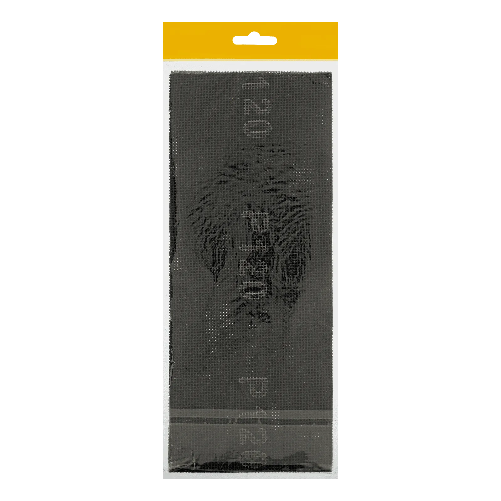 Абразивная сетка Denzel 75173 размером 115 х 280 мм, с зернистостью P 120, 5 шт. в упаковке, применяется для чистовой обработки и придания гладкости зашпаклеванным поверхностям, а также твердой древесине и металлу. Бережно снимает тонкий слой материала и лакокрасочного покрытия, удаляет ржавчину и заусенцы, сглаживает неровности. Обладает высоким ресурсом, т.к. заостренные зерна карбида кремния стачиваются медленно. Сетку устанавливают на ручное шлифовальное приспособление — брусок или сеткодержатель соответствующего типоразмера.