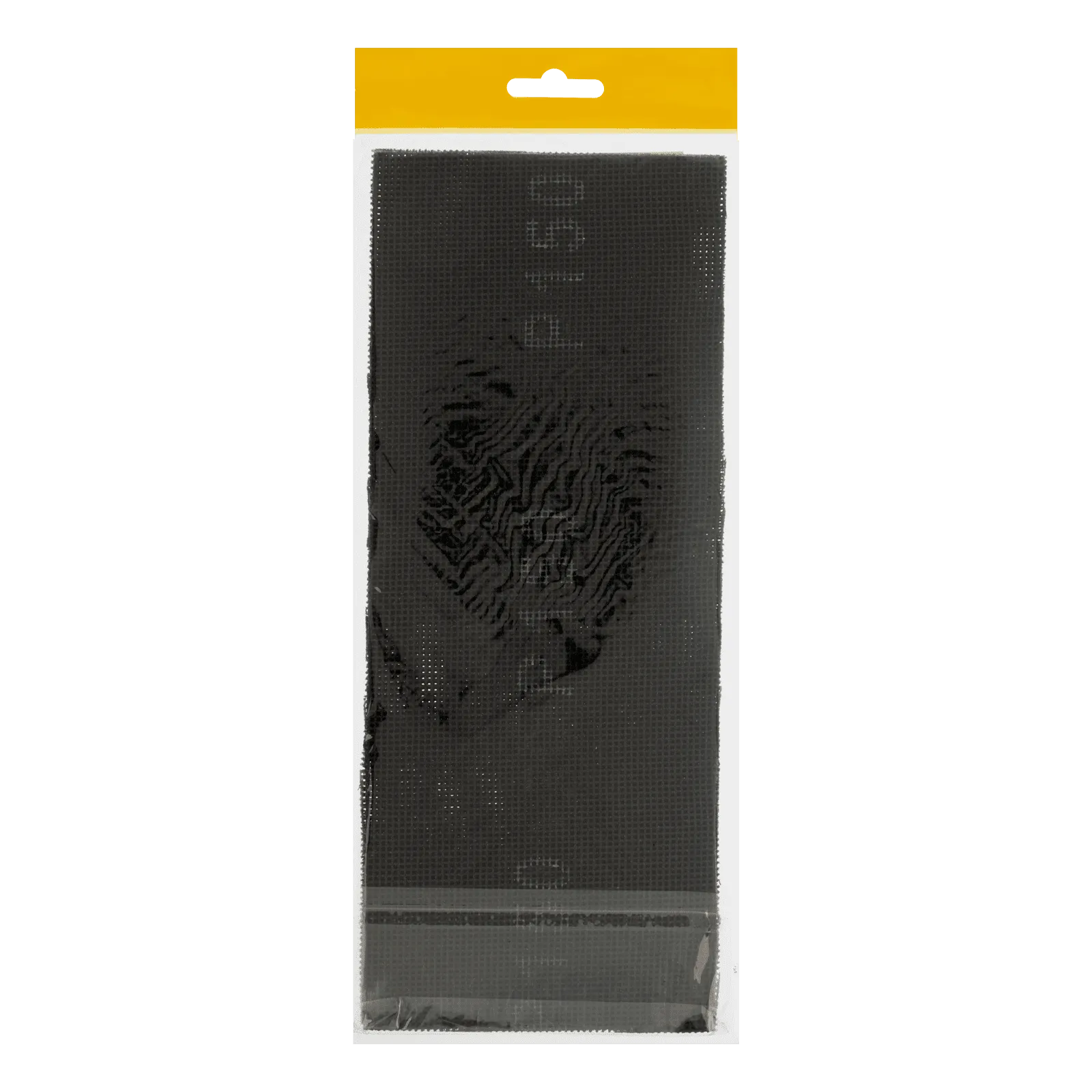 Абразивная сетка Denzel 75175 размером 115 х 280 мм, с зернистостью P 150, 5 шт. в упаковке, применяется для чистовой обработки и придания гладкости зашпаклеванным поверхностям, а также твердой древесине и металлу. Бережно снимает тонкий слой материала и лакокрасочного покрытия, удаляет ржавчину и заусенцы, сглаживает неровности. Обладает высоким ресурсом, т.к. заостренные зерна карбида кремния стачиваются медленно. Сетку устанавливают на ручное шлифовальное приспособление — брусок или сеткодержатель соответствующего типоразмера.