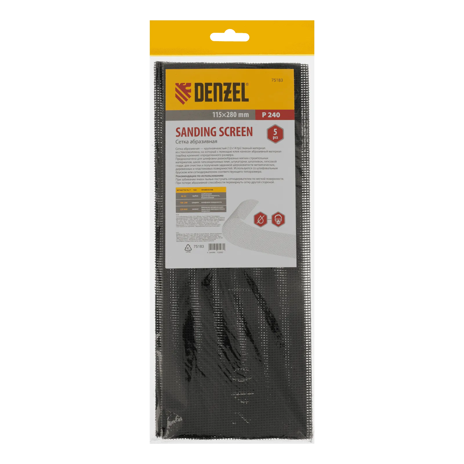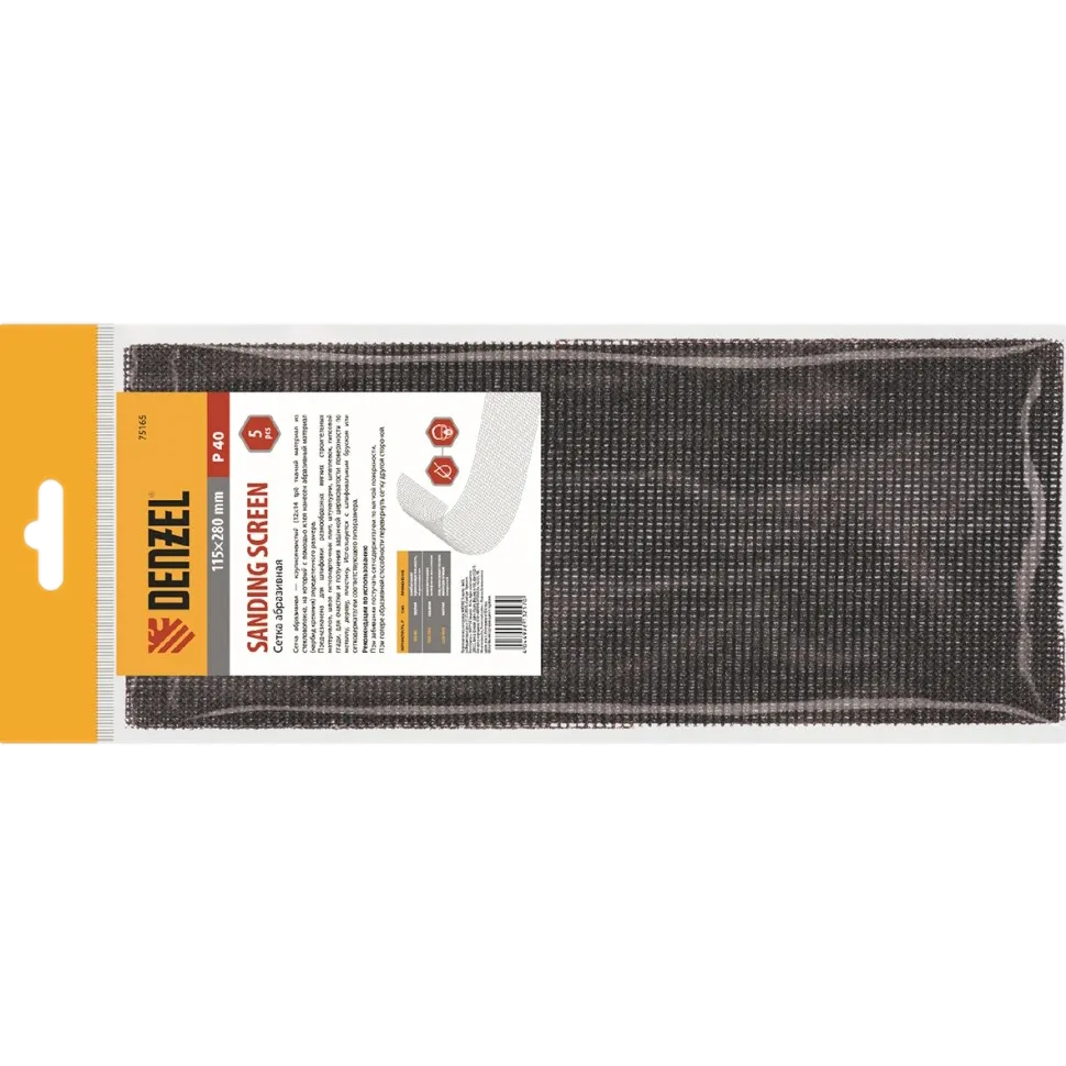 Абразивная сетка Denzel 75183 размером 115 х 280 мм, с зернистостью P 240, 5 шт. в упаковке, применяется для финишной обработки и придания гладкости зашпаклеванным поверхностям, а также твердой древесине и металлу. Бережно снимает тонкий слой материала и лакокрасочного покрытия, удаляет ржавчину и заусенцы, сглаживает неровности. Обладает высоким ресурсом, т.к. заостренные зерна карбида кремния стачиваются медленно. Сетку устанавливают на ручное шлифовальное приспособление — брусок или сеткодержатель соответствующего типоразмера.