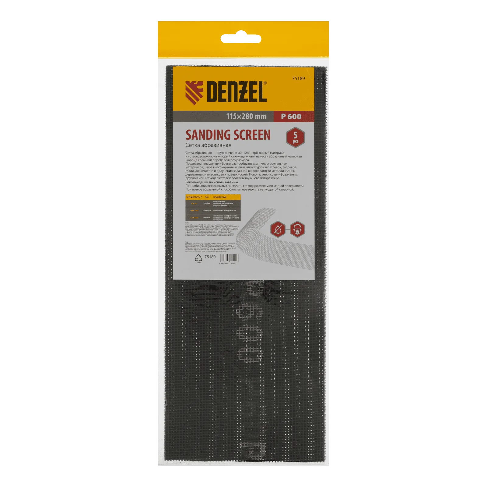 Абразивная сетка Denzel 75189 размером 115 х 280 мм, с зернистостью P 600, 5 шт. в упаковке, применяется для финишной обработки и придания гладкости зашпаклеванным поверхностям, а также твердой древесине и металлу. Бережно снимает тонкий слой материала и лакокрасочного покрытия, удаляет ржавчину и заусенцы, сглаживает неровности. Обладает высоким ресурсом, т.к. заостренные зерна карбида кремния стачиваются медленно. Сетку устанавливают на ручное шлифовальное приспособление — брусок или сеткодержатель соответствующего типоразмера.