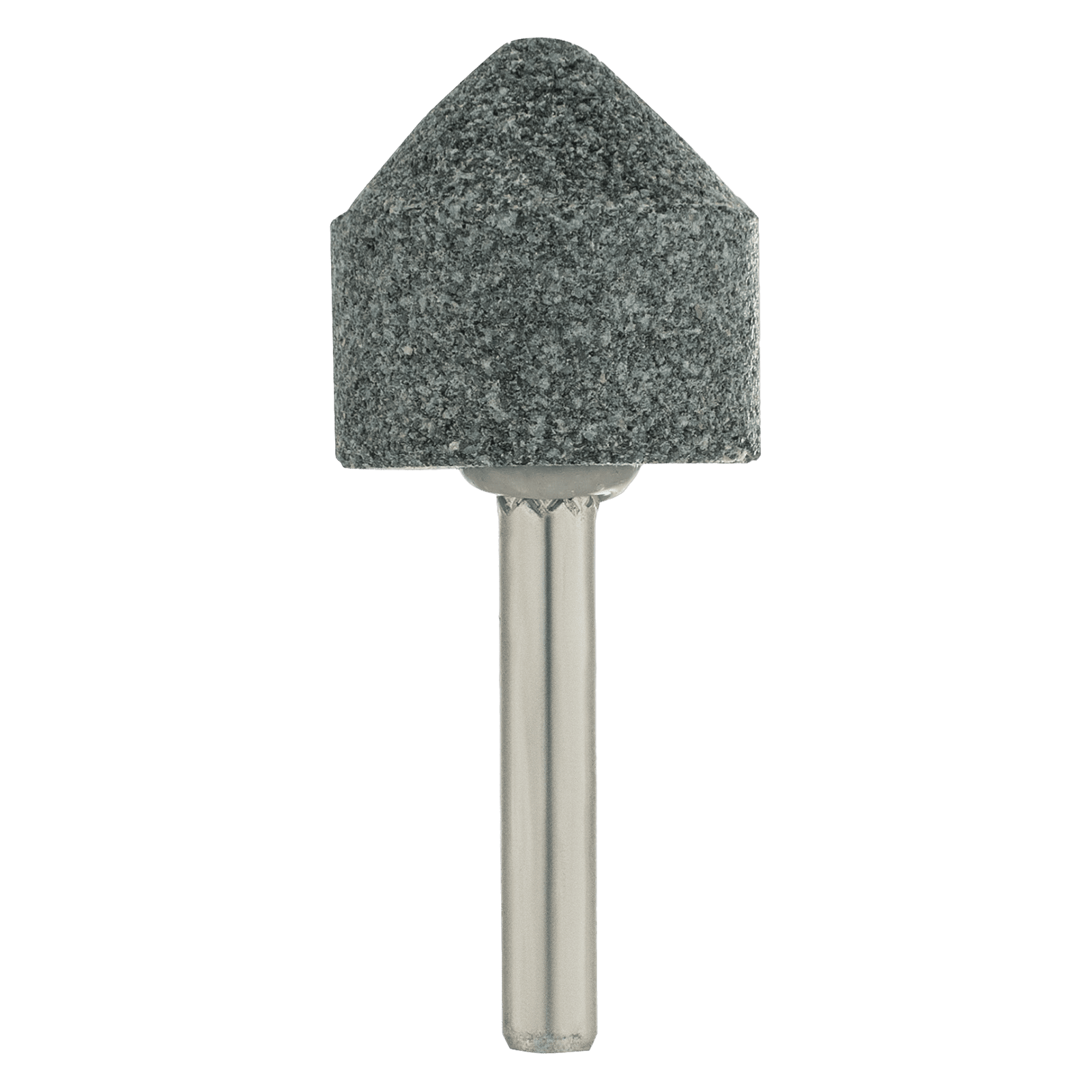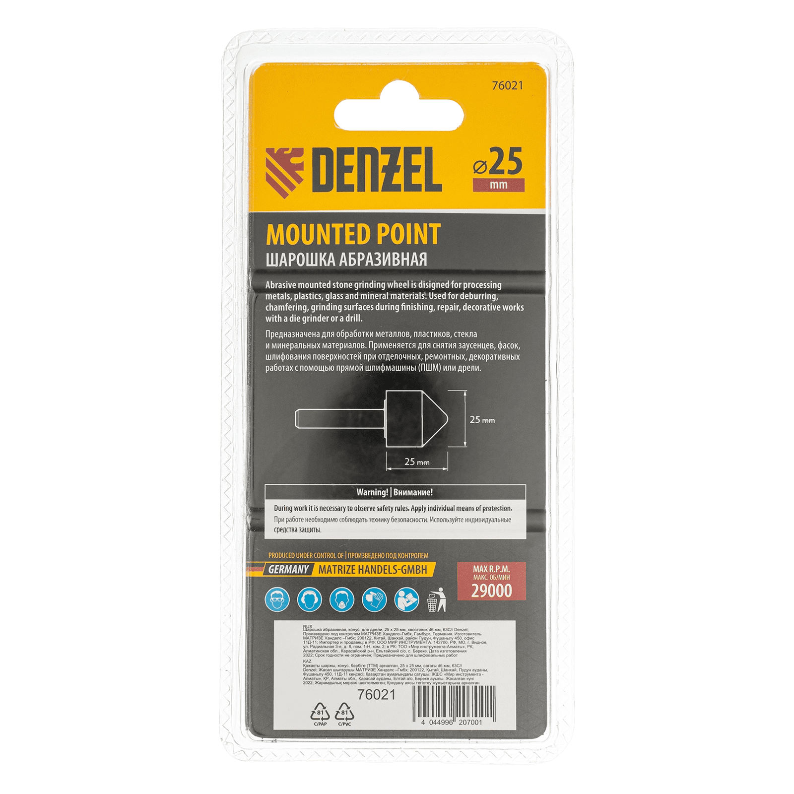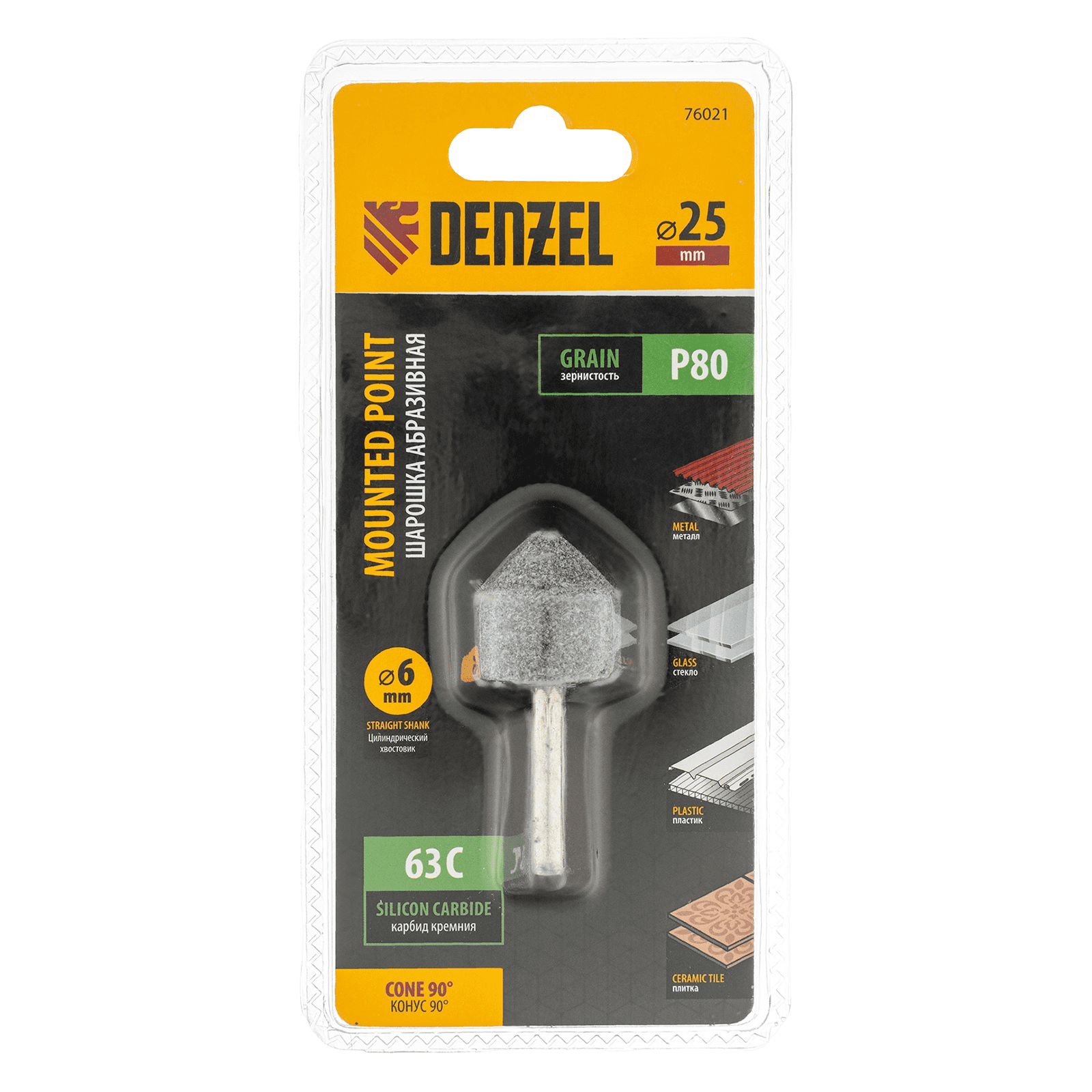 Шарошка абразивная Denzel 76021 с рабочей частью в форме конуса 25 х 25 мм, с хвостовиком диаметром 6 мм, — оснастка для дрели, шуруповерта или прямошлифовальной машины (ПШМ). Используется для снятия заусенцев, фасок, ржавчины, шлифования поверхности. Удобна для обработки цилиндрических и конических отверстий. Пригодится при выполнении ремонтных, отделочных и кузовных работ.