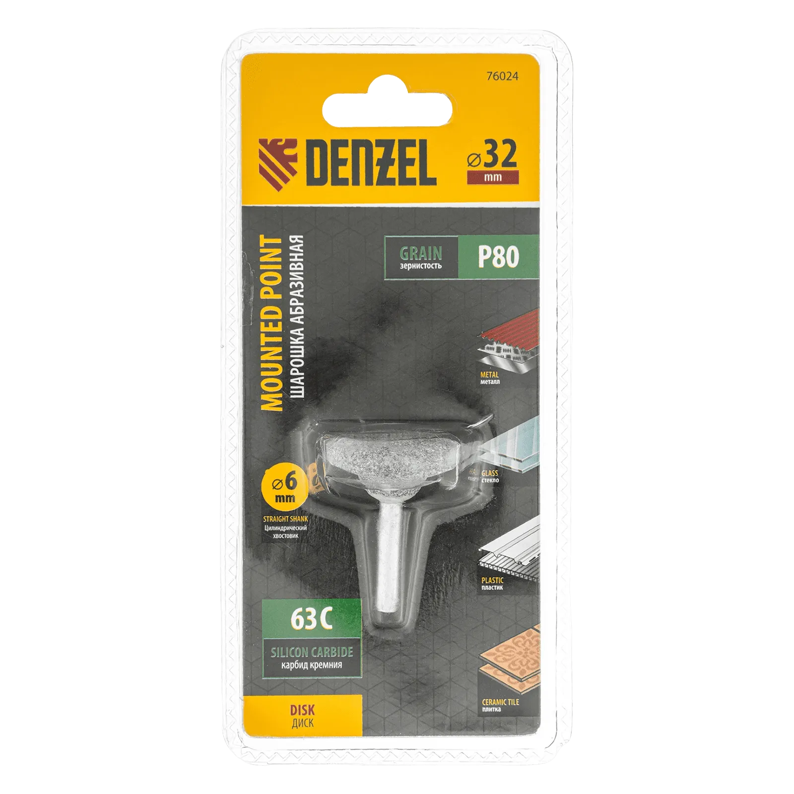 Шарошка абразивная Denzel 76024 с рабочей частью в форме диска 32 х 12 мм, с хвостовиком диаметром 6 мм, — оснастка для дрели, шуруповерта или прямошлифовальной машины (ПШМ). Используется для зачистки кромок, снятия заусенцев и фасок. Будет полезна при выполнении кузовных, ремонтных и отделочных работ.