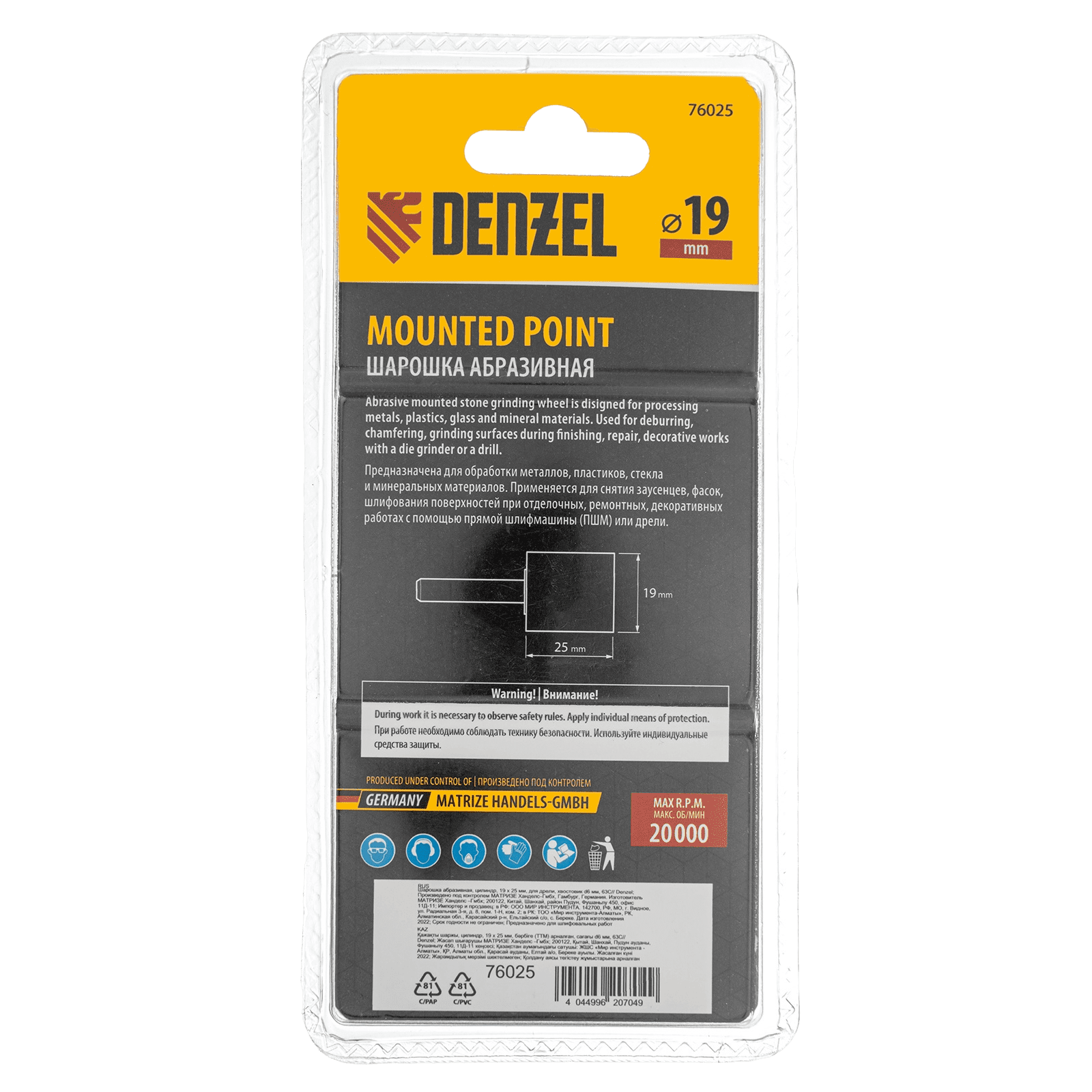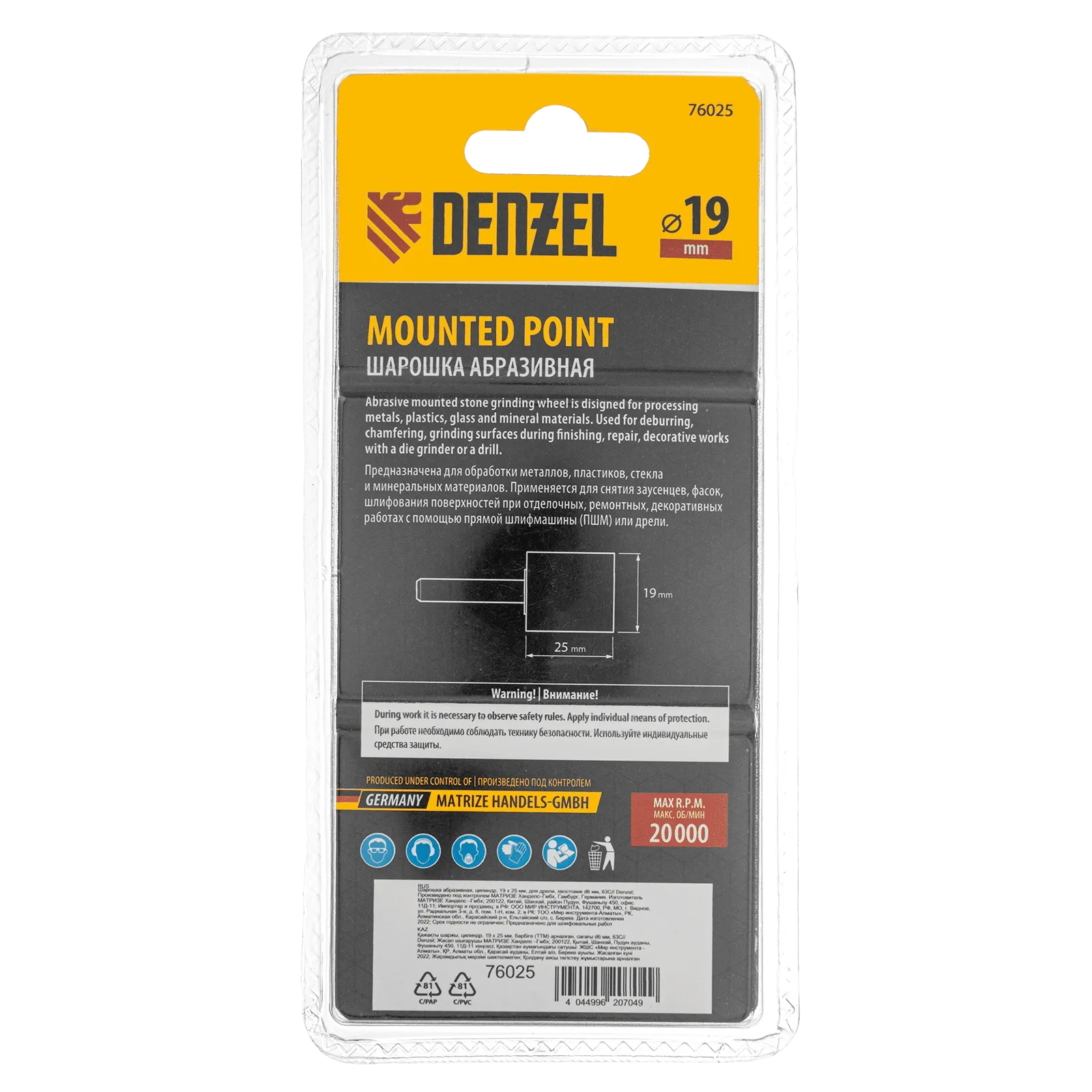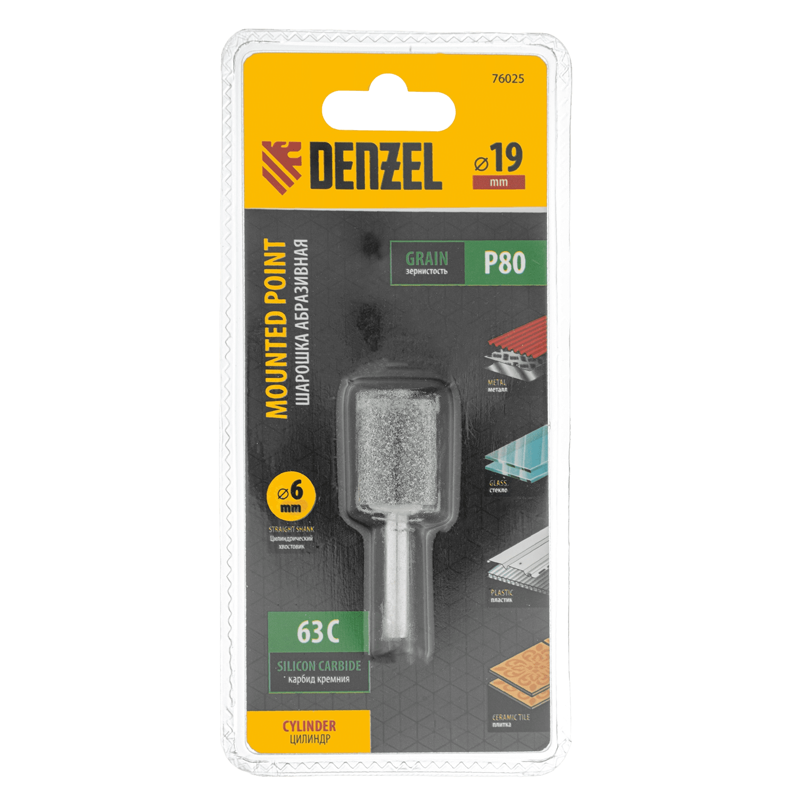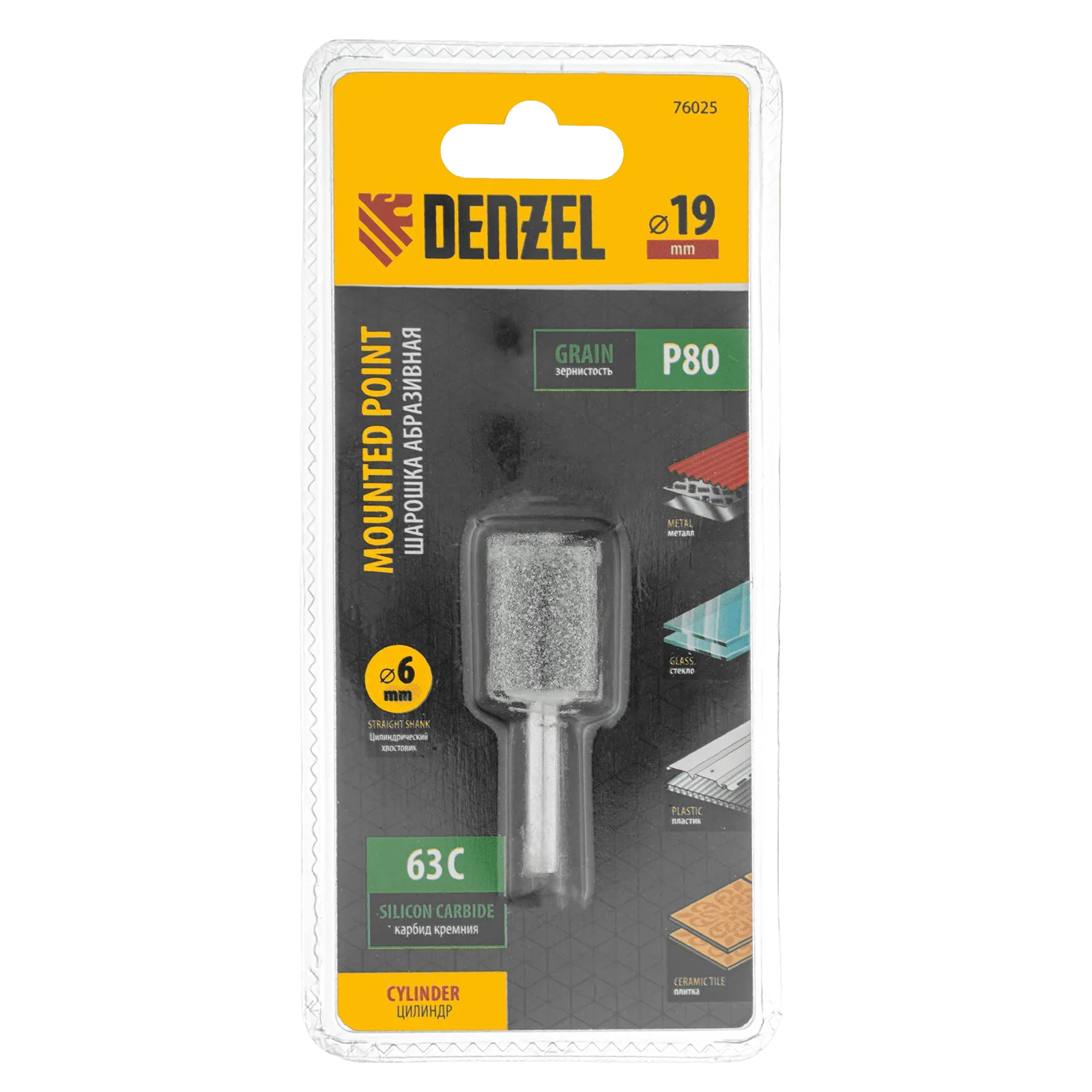 Шарошка абразивная Denzel 76025 с рабочей частью в форме цилиндра 19 х 25 мм, с хвостовиком диаметром 6 мм, устанавливается на дрель, шуруповерт или или прямошлифовальную машину (ПШМ). Удобна для зачистки ровных поверхностей, обработки сварных швов, удаления заусенцев, снятия фасок, а также для расширения отверстий и заточки лезвий режущих инструментов. Будет полезна при выполнении ремонтных, кузовных, отделочных работ.