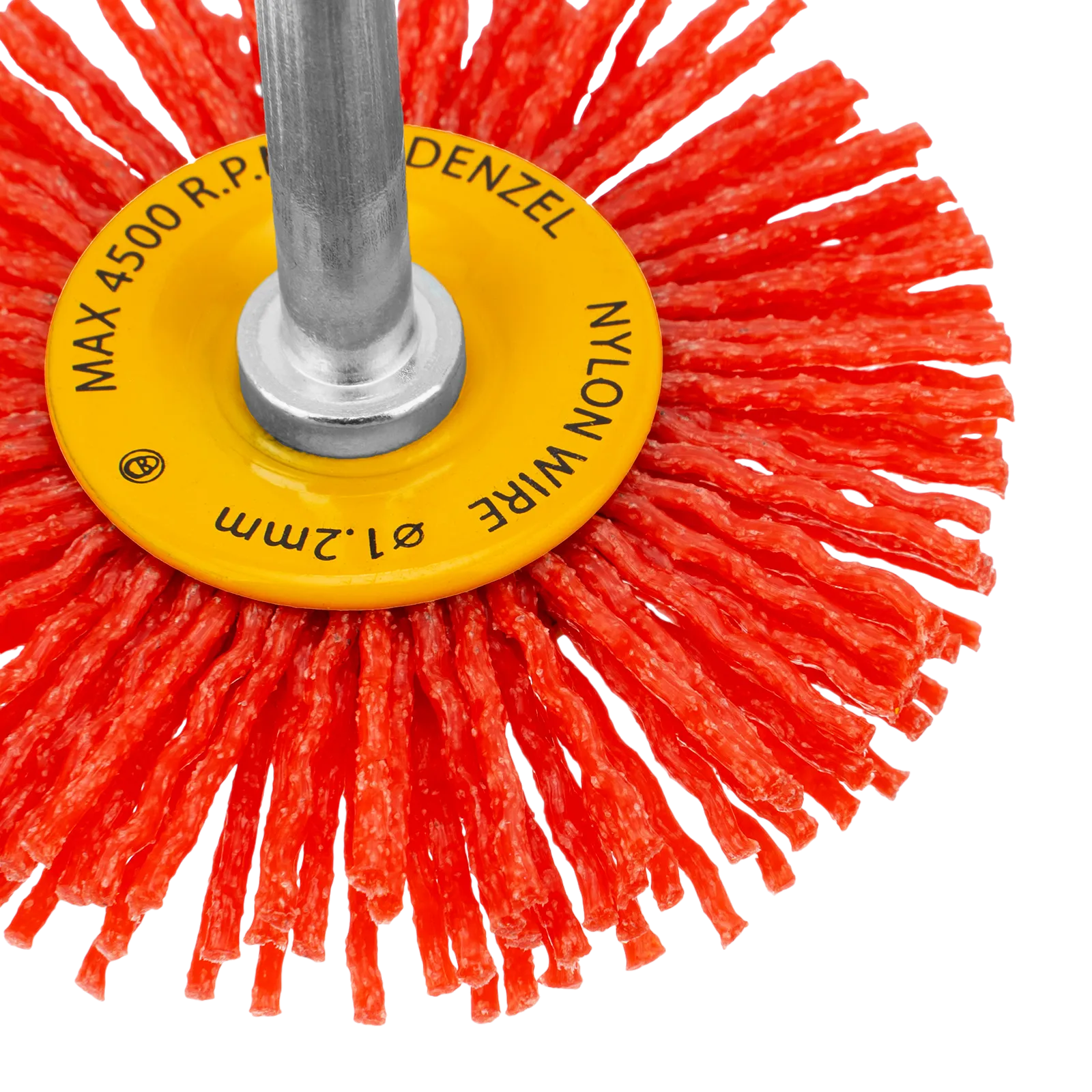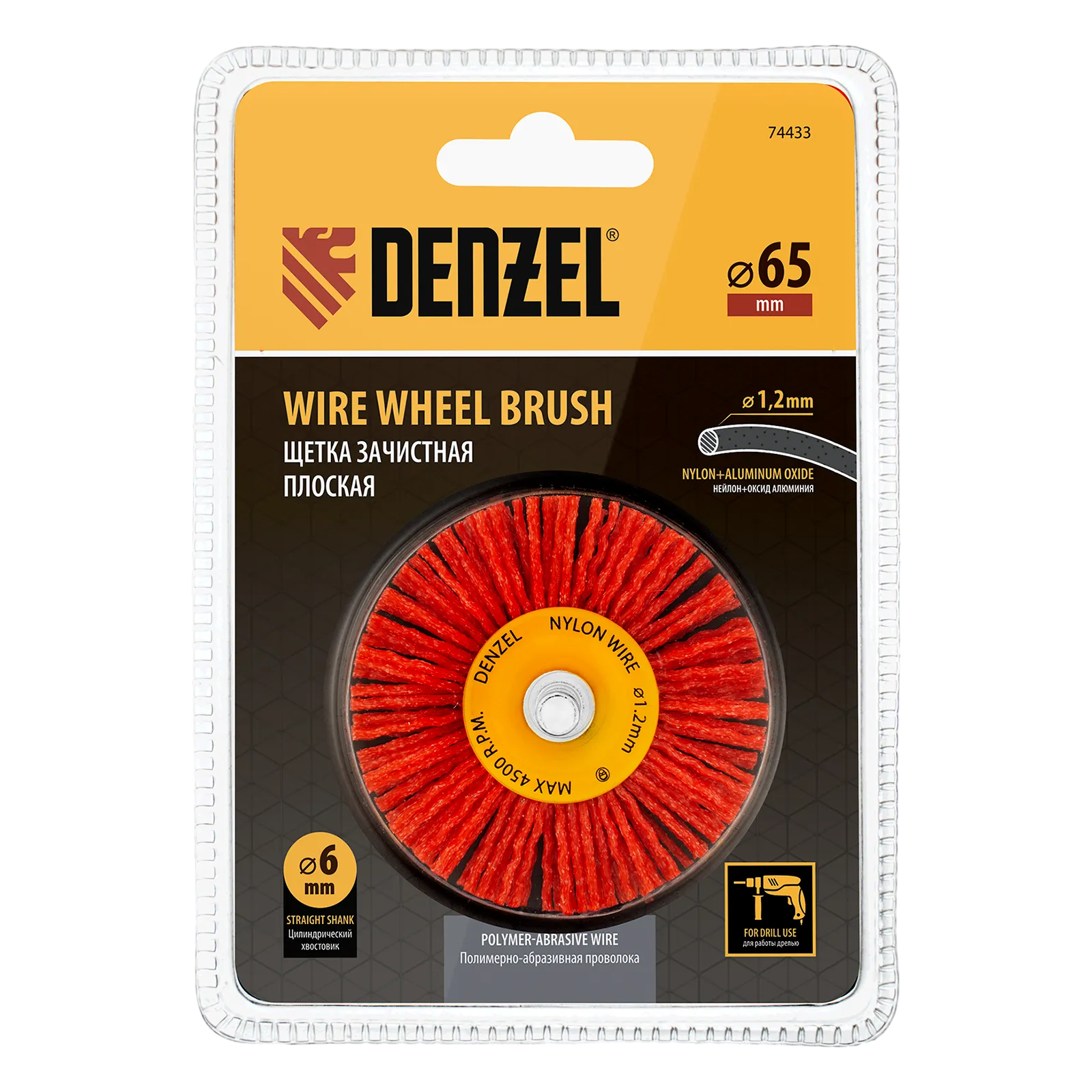 Плоская щетка Denzel 74433 диаметром 65 мм, со шпилькой и нейлоновой щетиной, — насадка для дрели, предназначенная для выполнения шлифовальных работ по пластику, древесине, стали и цветным металлам. Щетина изготовлена из высококачественного нейлона с нанесенным абразивом из оксида алюминия. Щетка оптимальна для деликатного удаления загрязнений, краски, пятен ржавчины с твердых поверхностей. Позволяет придать шероховатость поверхности, подходит для браширования древесины. Благодаря плоской форме насадка удобна для обработки пазов, изгибов и угловых соединений.