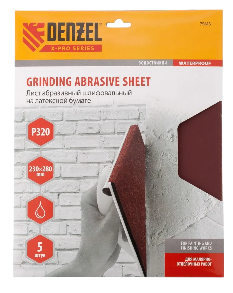 Шлифлист на бумажной основе Denzel Р320 арт. 75613 применяется для выравнивания шпатлеванных и оштукатуренных поверхностей на основе гипсовых и известковых составов, а также для обработки дерева, металла, пластика. Абразив Р320 с мелкими зернами легко справится с чистовой обработкой поверхностей.