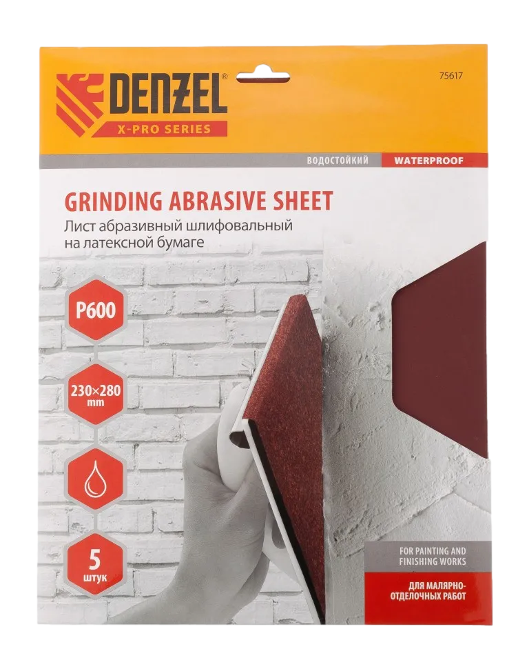 Шлифлист на бумажной основе Denzel Р600 арт. 75617 применяется для выравнивания шпатлеванных и оштукатуренных поверхностей на основе гипсовых и известковых составов, а также для обработки дерева, металла, пластика. Абразив Р600 с мелкими зернами легко справится с финишной обработкой поверхностей.