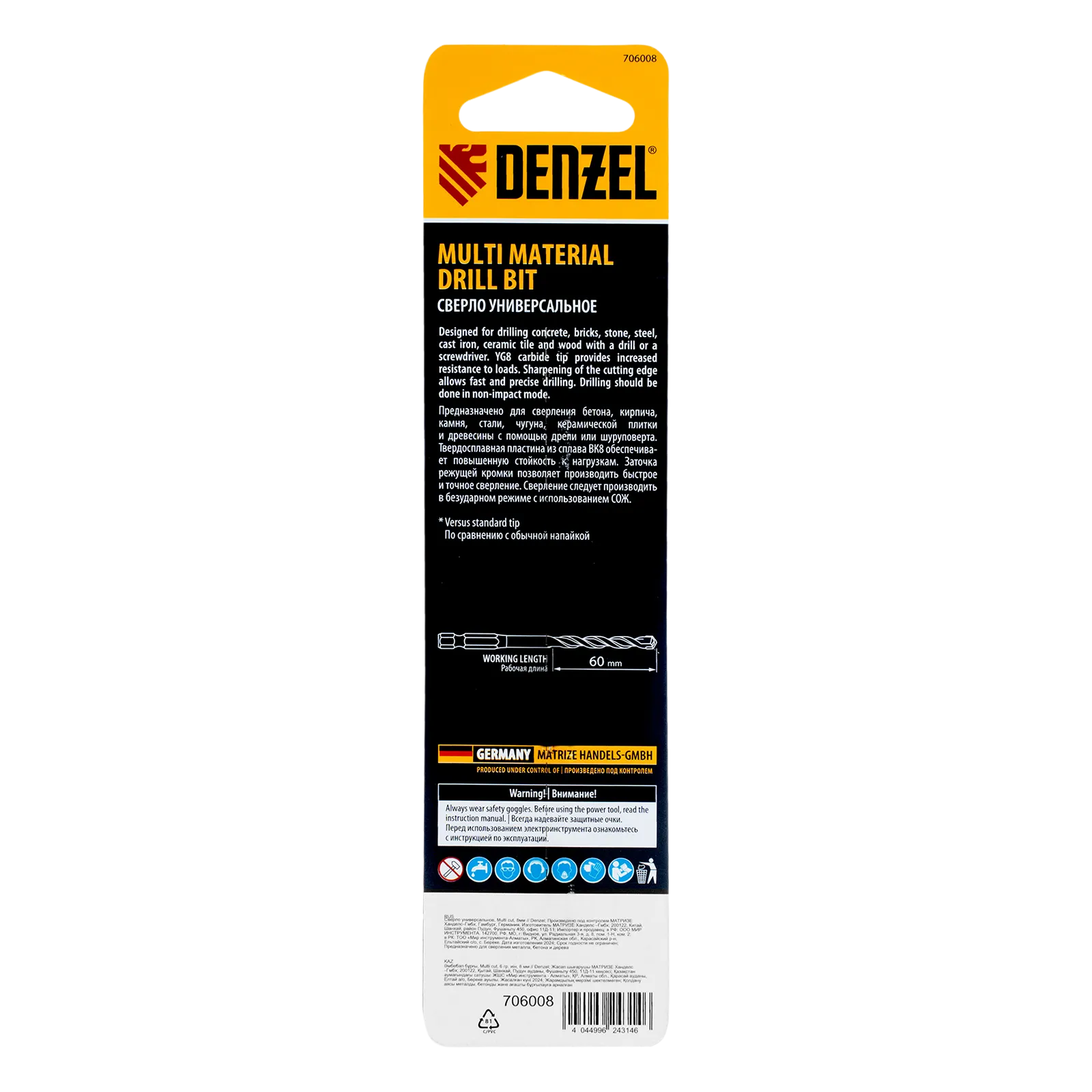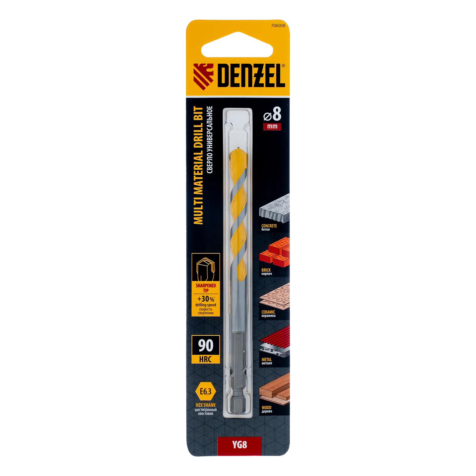 Универсальное сверло Denzel Multi Cut 706008 с шестигранным хвостовиком предназначено для получения отверстий диаметром 8 мм в бетоне, металле, керамике, древесине любых пород, фанере, пластмассе и других материалах. Используется при проведении строительных, ремонтных работ, также пригодится в быту.