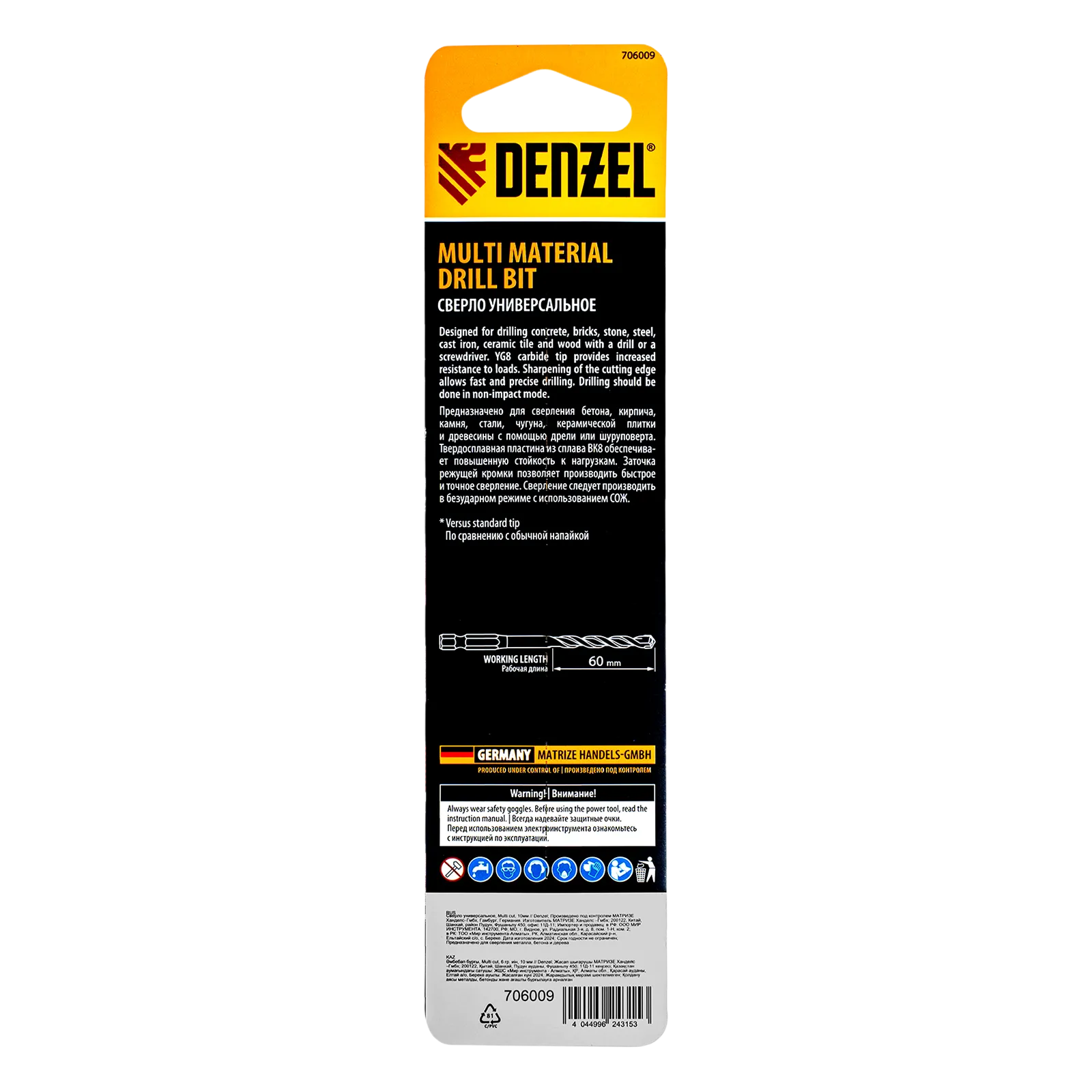 Универсальное сверло Denzel Multi Cut 706009 с шестигранным хвостовиком предназначено для получения отверстий диаметром 10 мм в бетоне, металле, керамике, древесине любых пород, фанере, пластмассе и других материалах. Используется при проведении строительных, ремонтных работ, также пригодится в быту.