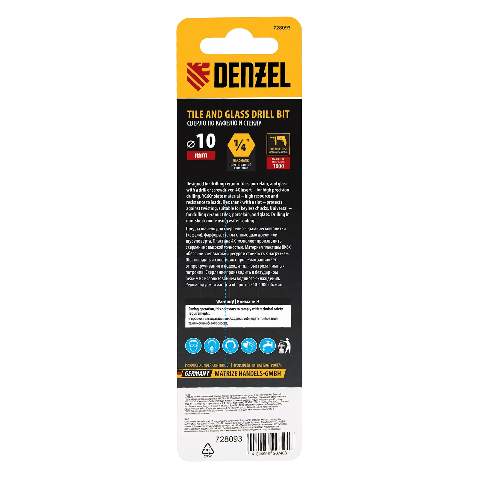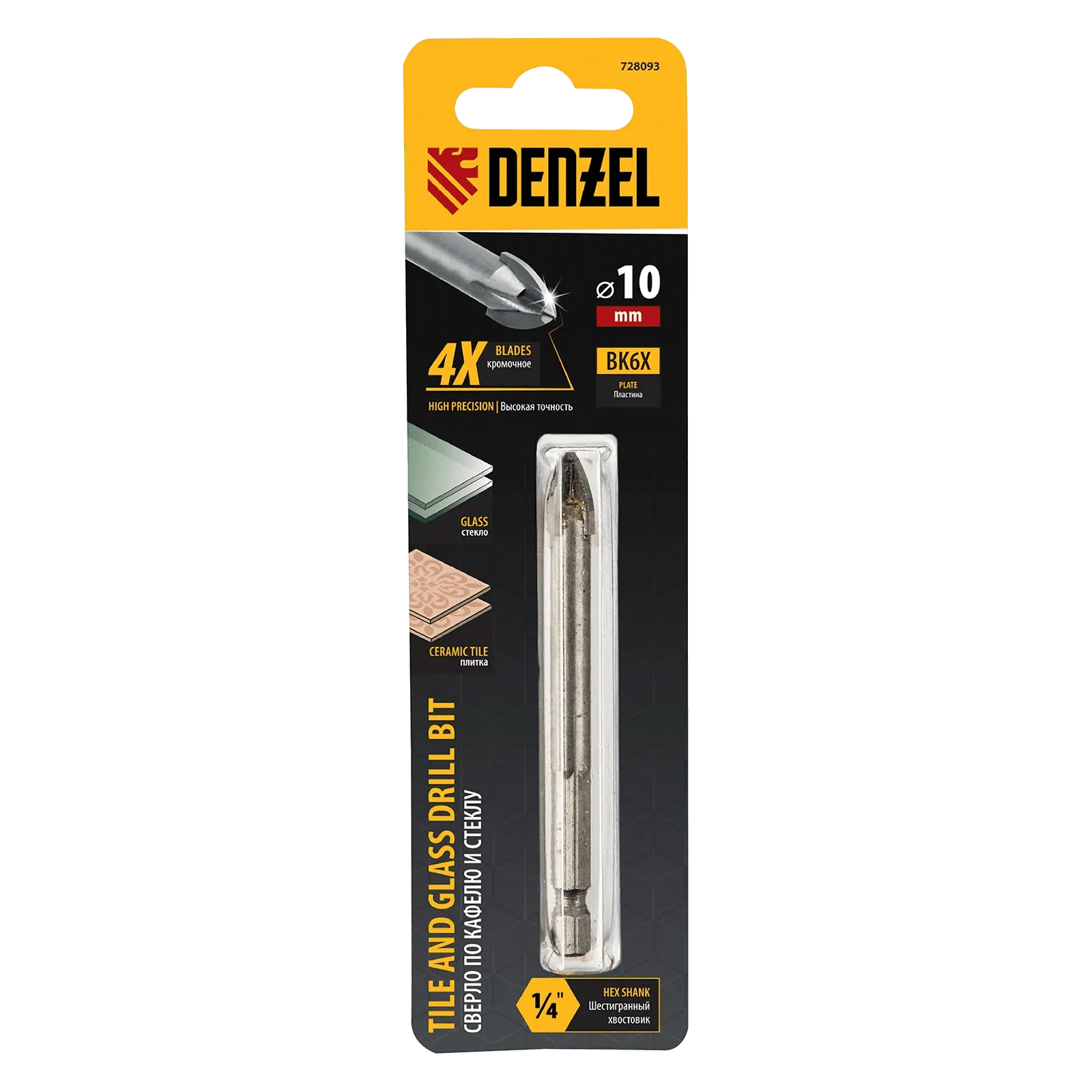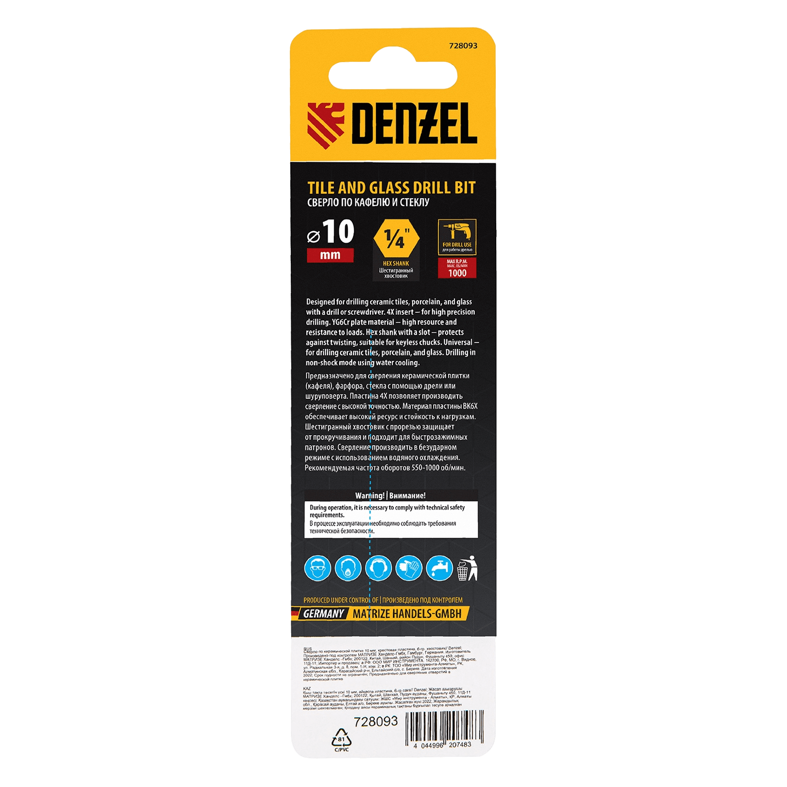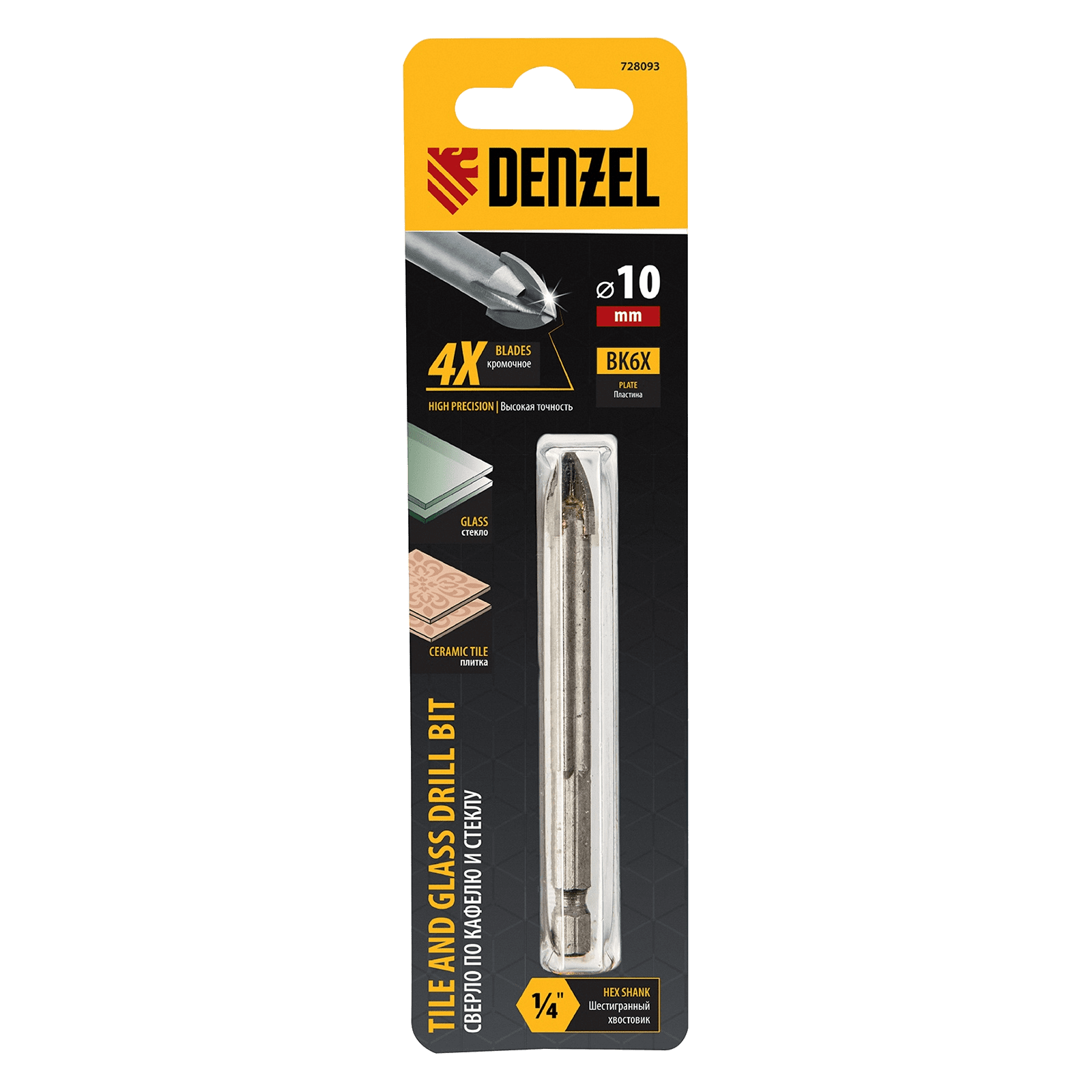 Сверло Denzel 728093 диаметром 10 мм, с крестовой пластиной и шестигранным хвостовиком, используется для сверления керамической плитки, стекла и других материалов с помощью дрели или шуруповерта. Четырехкромочная режущая пластина обеспечивает высокую скорость засверливания. Оснастка выдерживает высокие нагрузки и подходит для интенсивного профессионального использования.