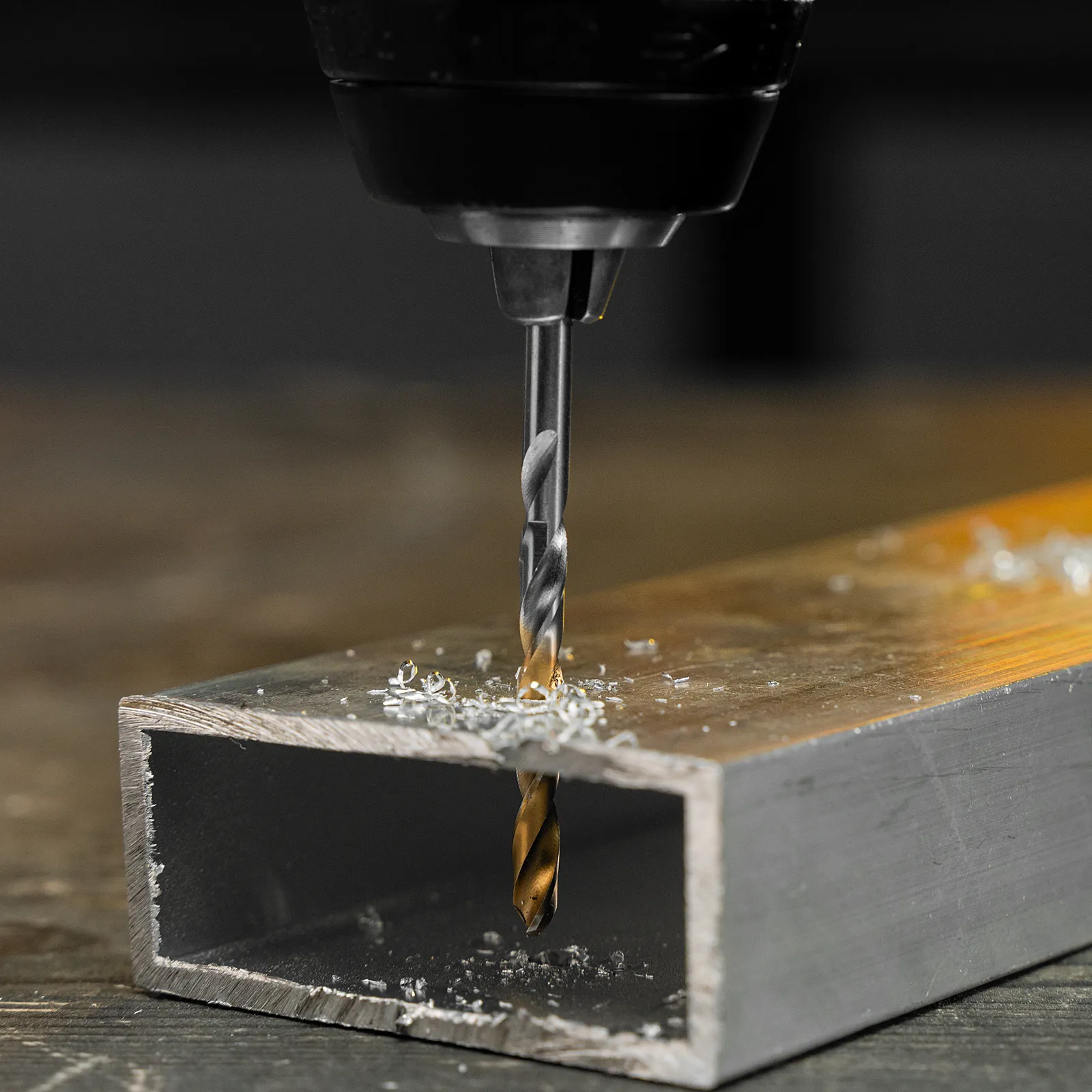 - Высокая производительность — поверхность сверла покрыта нитридом титана, что снижает трение о стенки отверстия и уменьшает нагрев, а также улучшает отвод стружки.