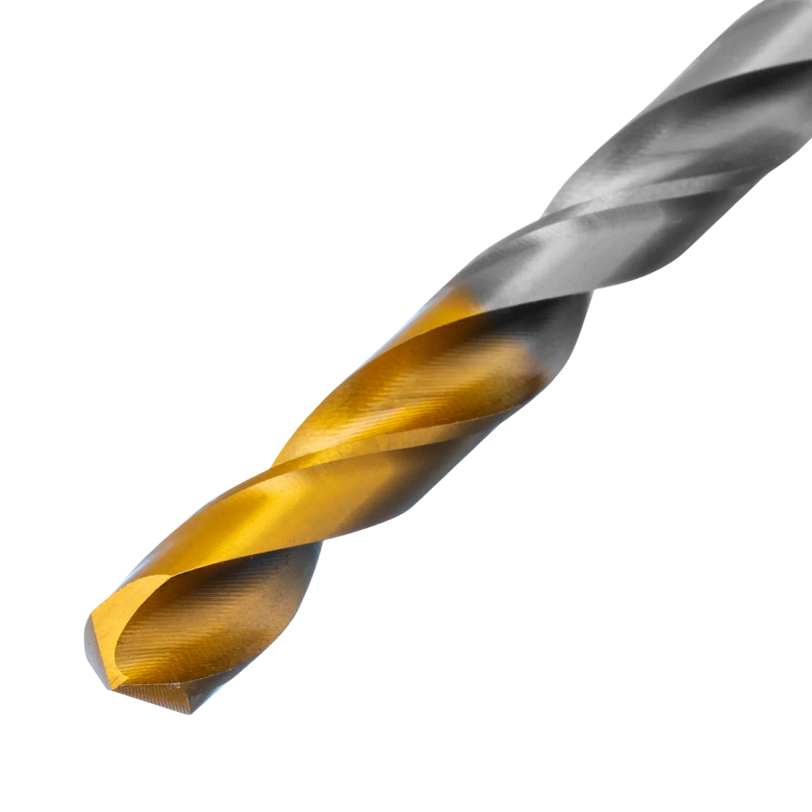 - Высокая производительность — поверхность сверла покрыта нитридом титана, что снижает трение о стенки отверстия и уменьшает нагрев, а также улучшает отвод стружки.