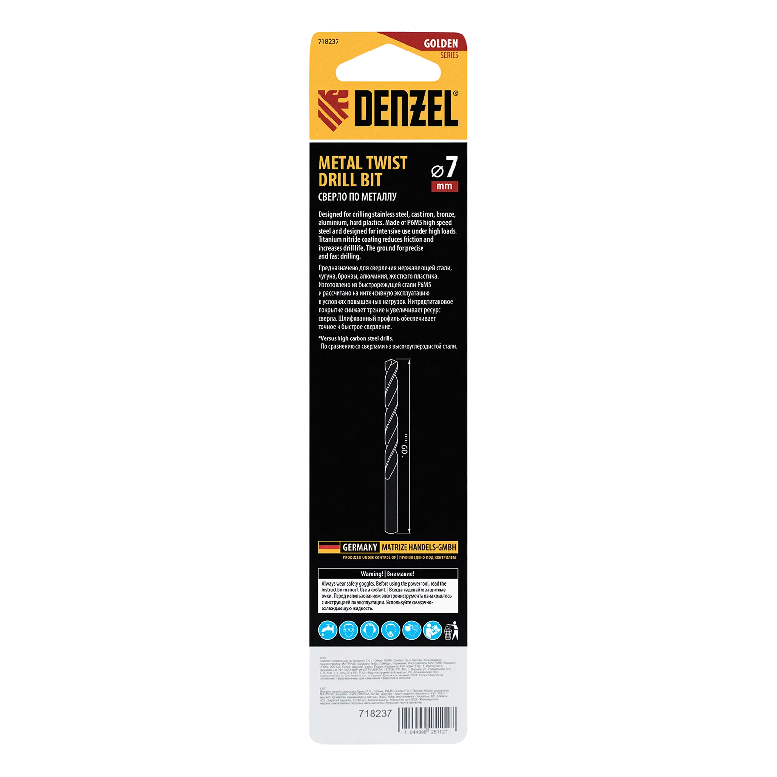 Спиральное сверло по металлу Denzel Golden Tip 718237 из стали P6M5, размером 7 х 109 мм, предназначено для получения отверстий в легированных и цветных металлах — меди, алюминии, мягкой бронзе, титане, латуни. Оснастка позволяет эффективно справляться с поставленными задачами благодаря оптимальному углу заточки 135°. Класс точности A гарантирует высокое качество полученных отверстий. Сверло используется для проведения монтажно-сборочных работ.