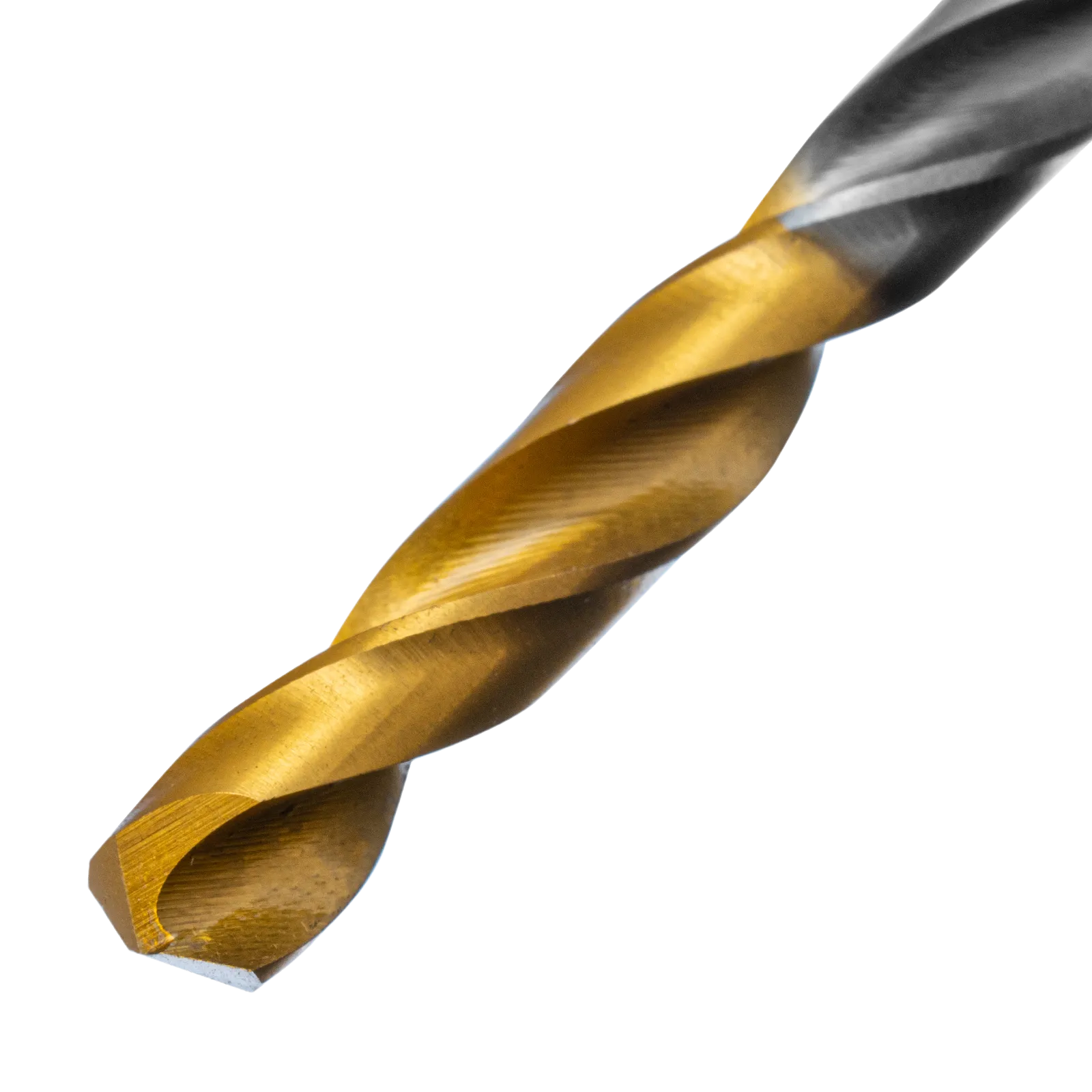 - Высокая производительность — поверхность сверла покрыта нитридом титана, что снижает трение о стенки отверстия и уменьшает нагрев, а также улучшает отвод стружки.