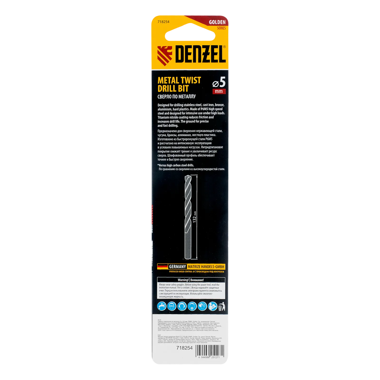 Удлиненное спиральное сверло по металлу Denzel Golden Tip 718254 из стали P6M5, размером 5 х 132 мм, предназначено для получения отверстий в легированных и цветных металлах — меди, алюминии, мягкой бронзе, титане, латуни. Оснастка позволяет эффективно справляться с этими задачами благодаря оптимальному углу заточки 135°. Класс точности A гарантирует высокое качество работ, а удлиненный профиль позволяет сверлить глубокие отверстия. Сверло используется для проведения монтажно-сборочных работ.
