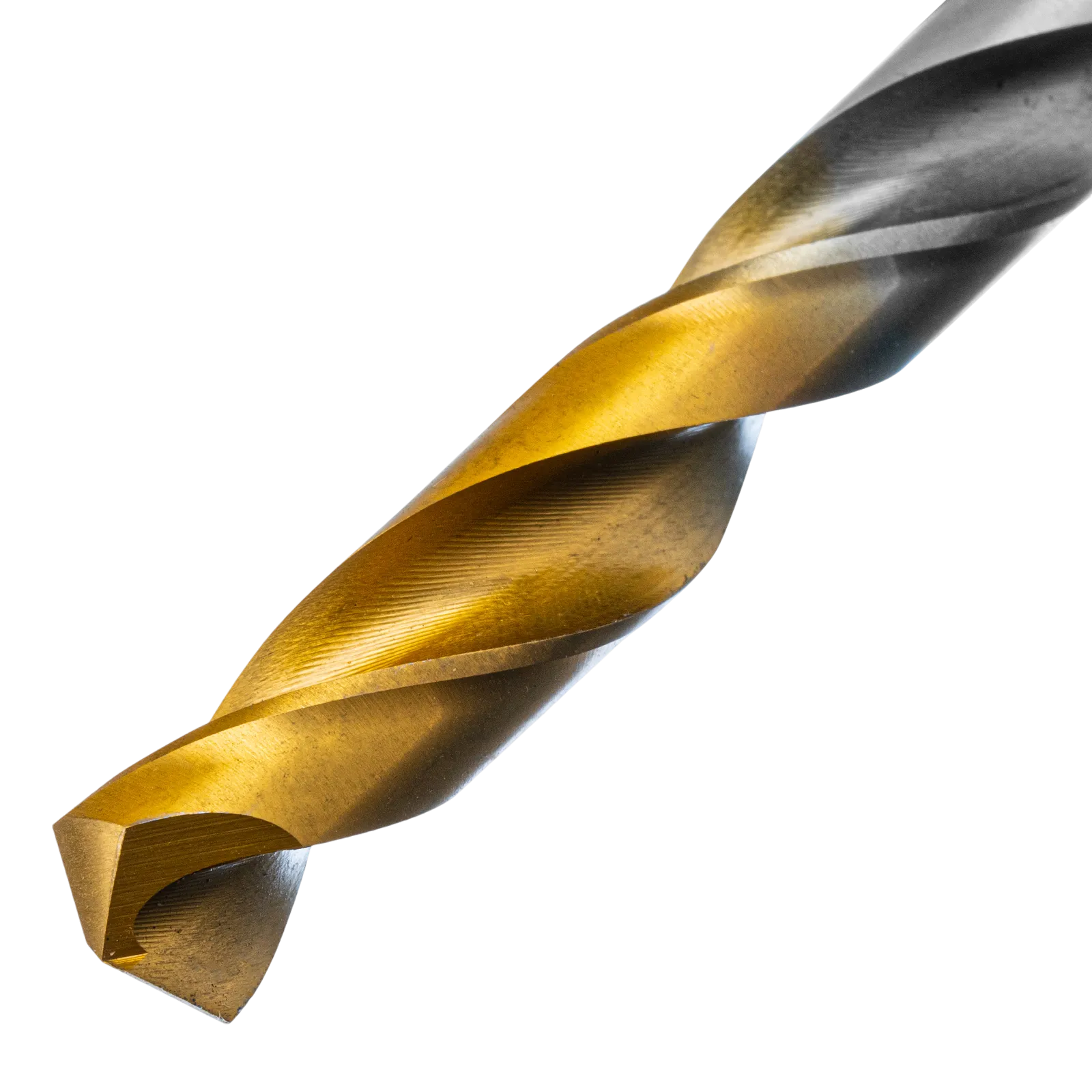 - Высокая производительность — поверхность сверла покрыта нитридом титана, что снижает трение о стенки отверстия и уменьшает нагрев, а также улучшает отвод стружки.