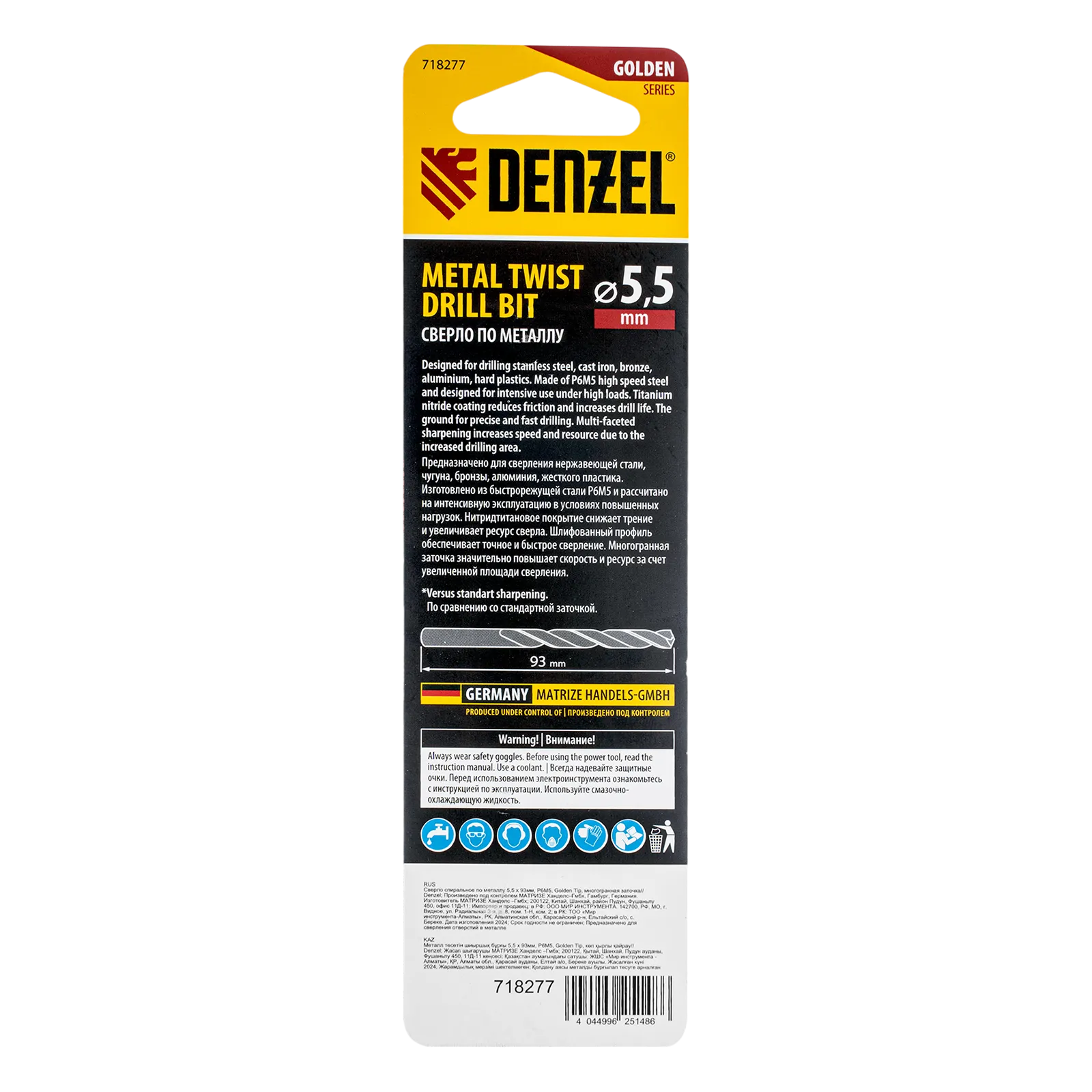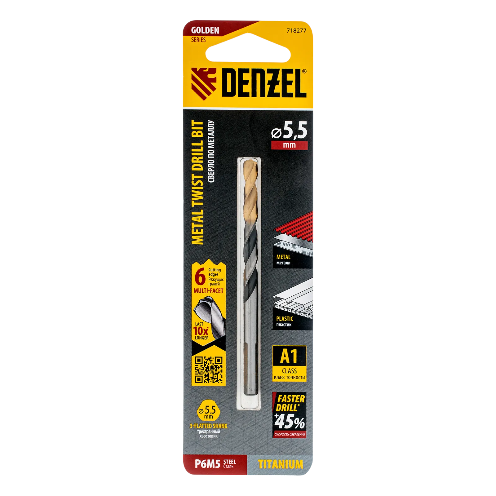 Спиральное сверло по металлу Denzel Golden Tip 718277 из стали P6M5, размером 5,5 х 93 мм, с многогранной заточкой, предназначено для получения отверстий в легированных сталях и цветных металлах. Многогранная заточка позволяет получать чистые и ровные отверстия практически без заусенцев. Сверлу присвоен класс точности A, что гарантирует высокое качество работ. Оснастка подходит для бытового и профессионального применения.