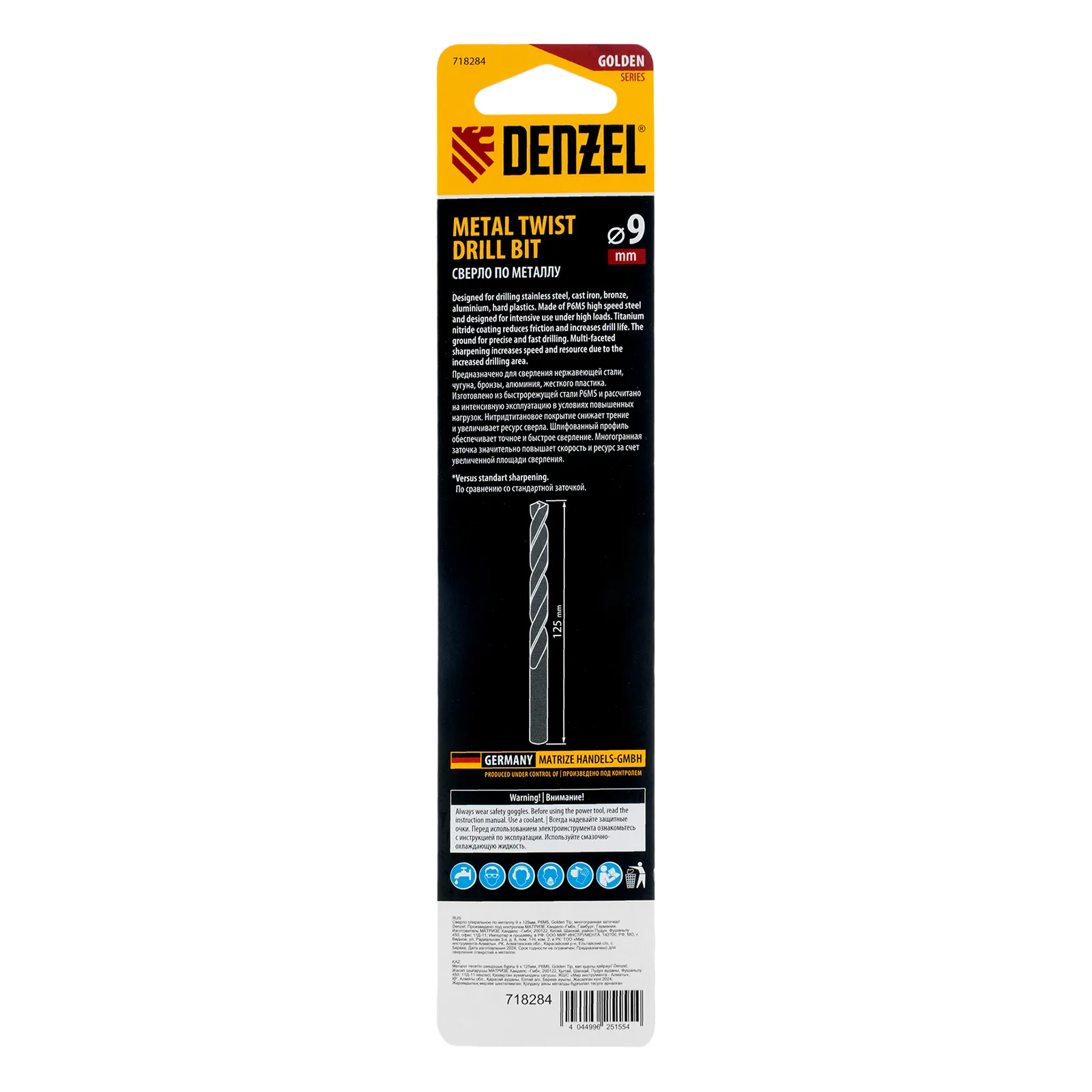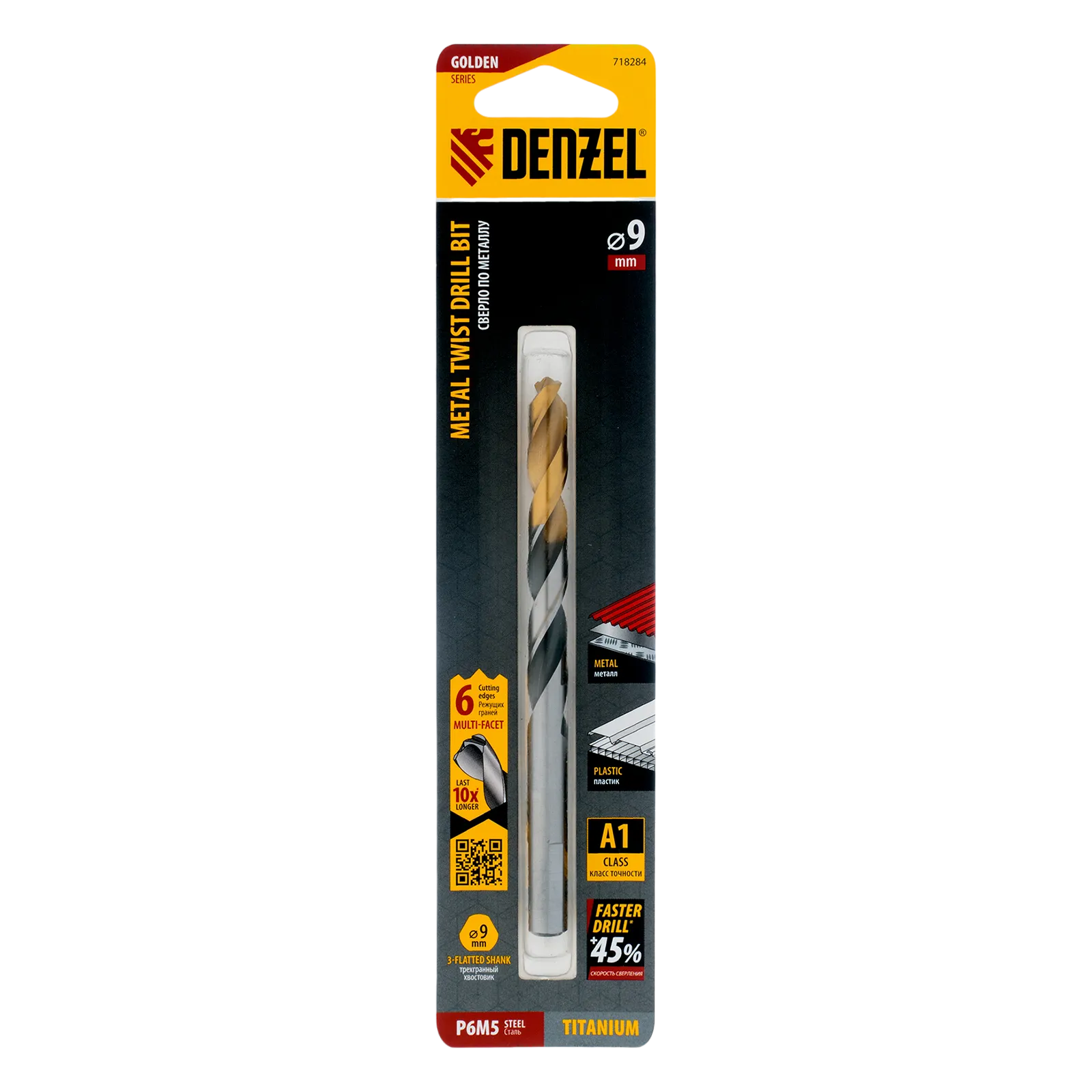 Спиральное сверло по металлу Denzel Golden Tip 718284 из стали P6M5, размером 9 х 125 мм, с многогранной заточкой, предназначено для получения отверстий в легированных сталях и цветных металлах. Многогранная заточка позволяет получать чистые и ровные отверстия практически без заусенцев. Сверлу присвоен класс точности A, что гарантирует высокое качество работ. Оснастка подходит для бытового и профессионального применения.
