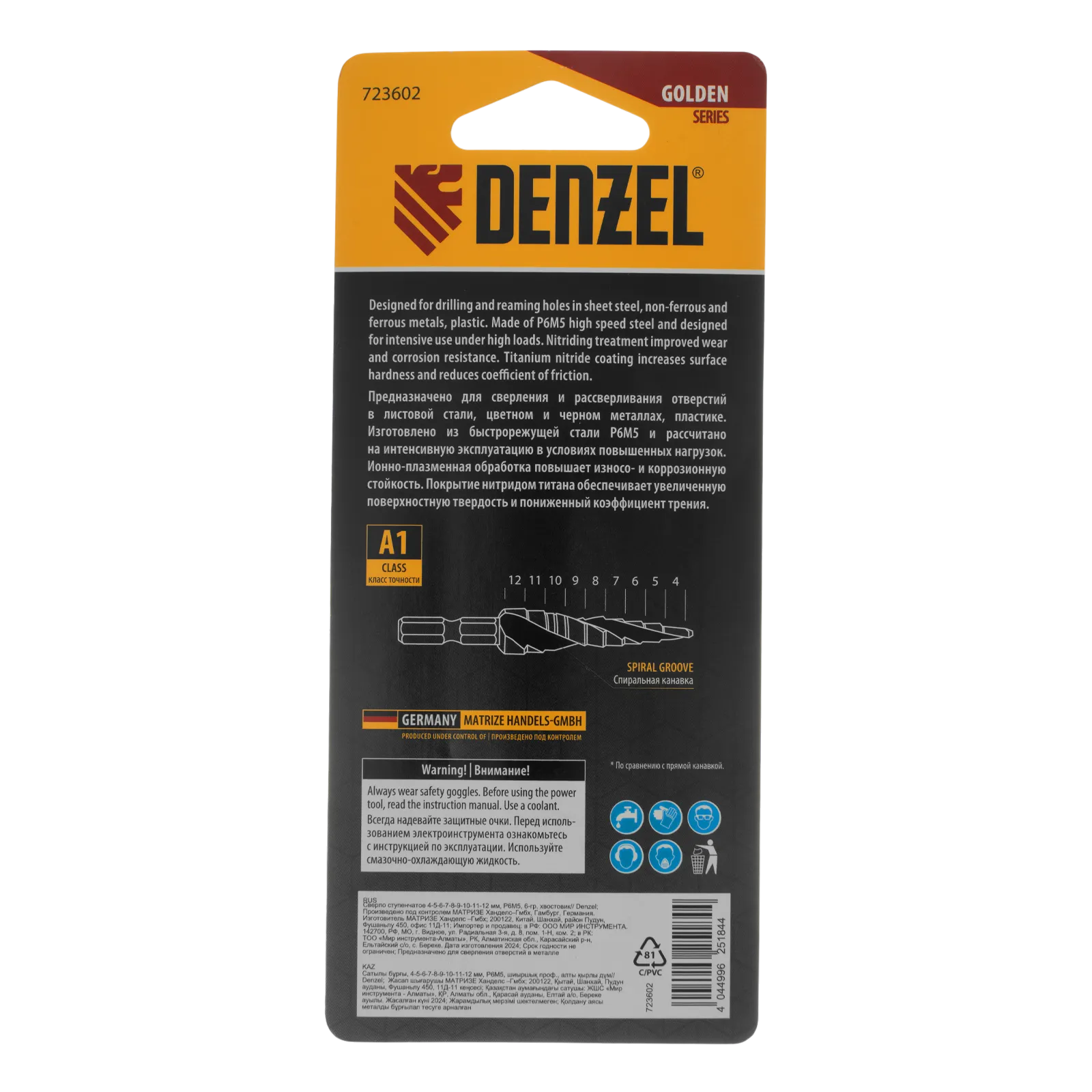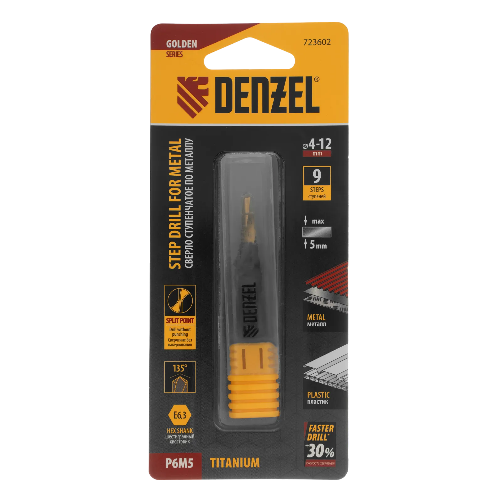 Ступенчатое сверло Denzel 723602 из стали P6M5, с 6-гранным хвостовиком, предназначено для сверления отверстий диаметром от 4 до 12 мм в сталях, цветных металлах и пластике. Избавляет от необходимости иметь при себе целый набор традиционных сверл. Позволяет получать отверстия с ровными краями и уже снятой фаской под гайку или болт. Оснастке присвоен класс точности A1. Сверло пригодится дома и в мастерской.
