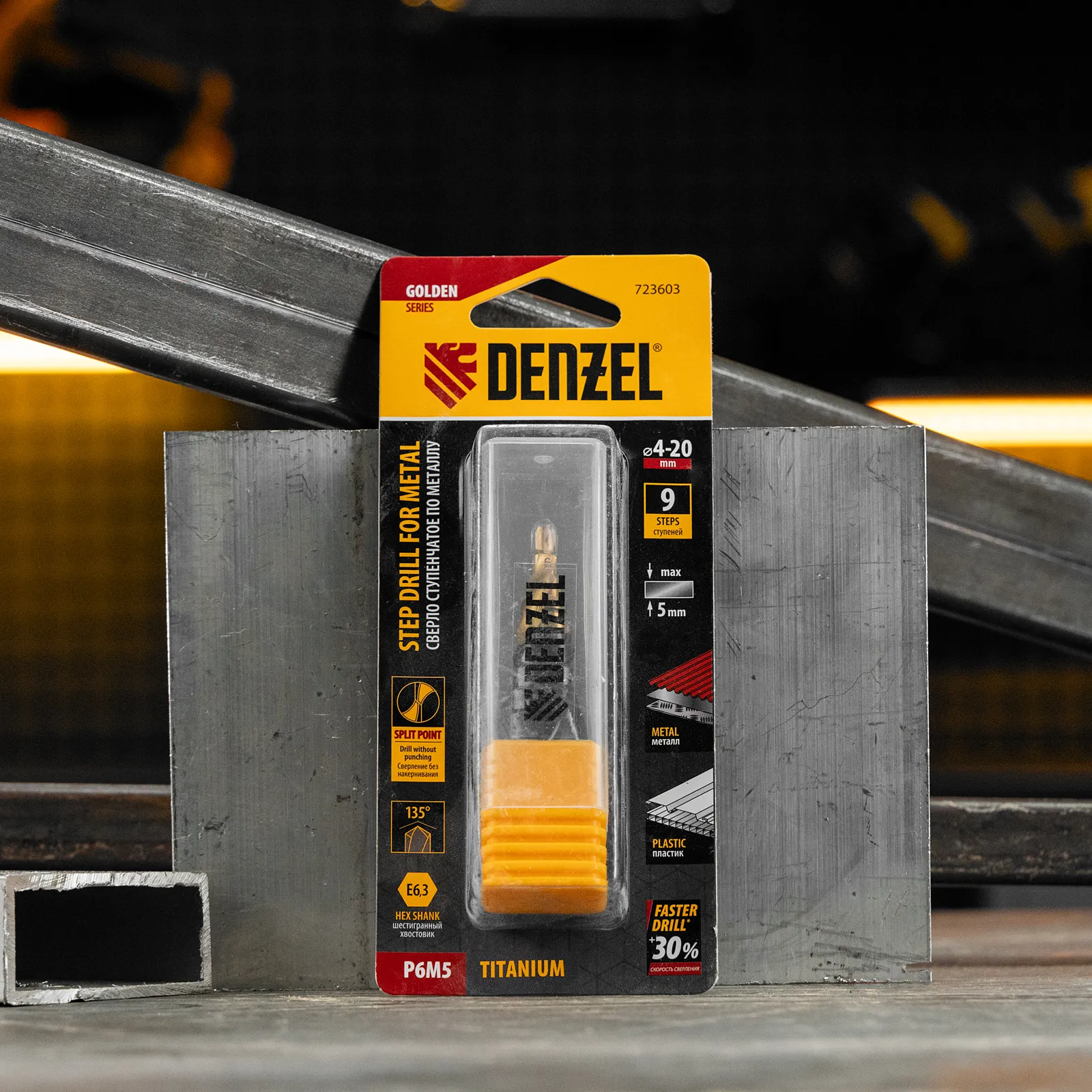 Ступенчатое сверло Denzel 723603 из стали P6M5, с 6-гранным хвостовиком, предназначено для сверления отверстий диаметром от 4 до 20 мм в сталях, цветных металлах и пластике. Избавляет от необходимости иметь при себе целый набор традиционных сверл. Позволяет получать отверстия с ровными краями и уже снятой фаской под гайку или болт. Оснастке присвоен класс точности A1. Сверло пригодится дома и в мастерской.
